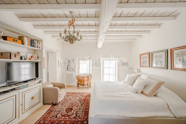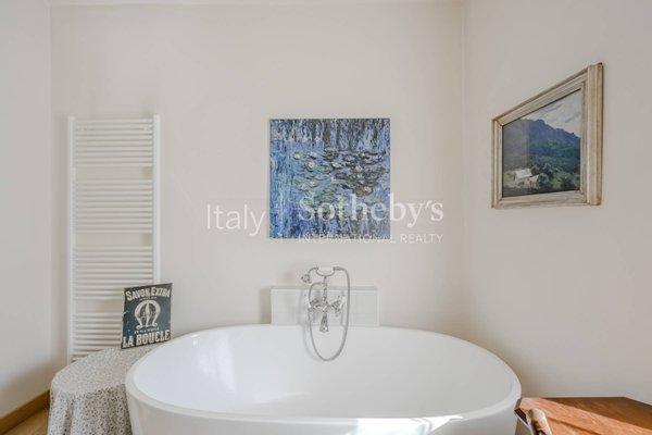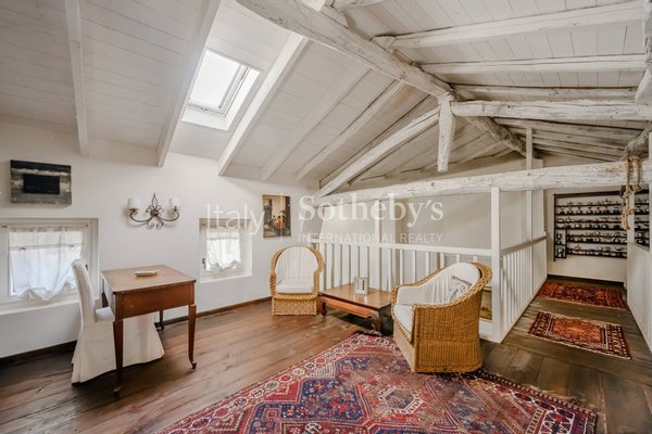 Das Anwesen erstreckt sich über drei Etagen, die über einen internen Aufzug erreichbar sind, und besticht durch großzügige, gut aufgeteilte Räume. Es verfügt über 5 Schlafzimmer, jeweils mit begehbarem Kleiderschrank, und 6 elegante Badezimmer. Im ersten Stock gibt es einen unabhängigen Bereich für Personal, ausgestattet mit Schlafzimmer, Badezimmer und Küchenzeile. Historische architektonische Elemente wie Kamine, Sichtbalken und eine prächtige Küche verbinden sich harmonisch mit modernen Lösungen und schaffen eine einzigartige Atmosphäre. Besonders eindrucksvoll ist das dritte Stockwerk mit einer Galerie, die auf die darunterliegende Ebene blickt und einen beeindruckenden, szenografischen Effekt bietet.