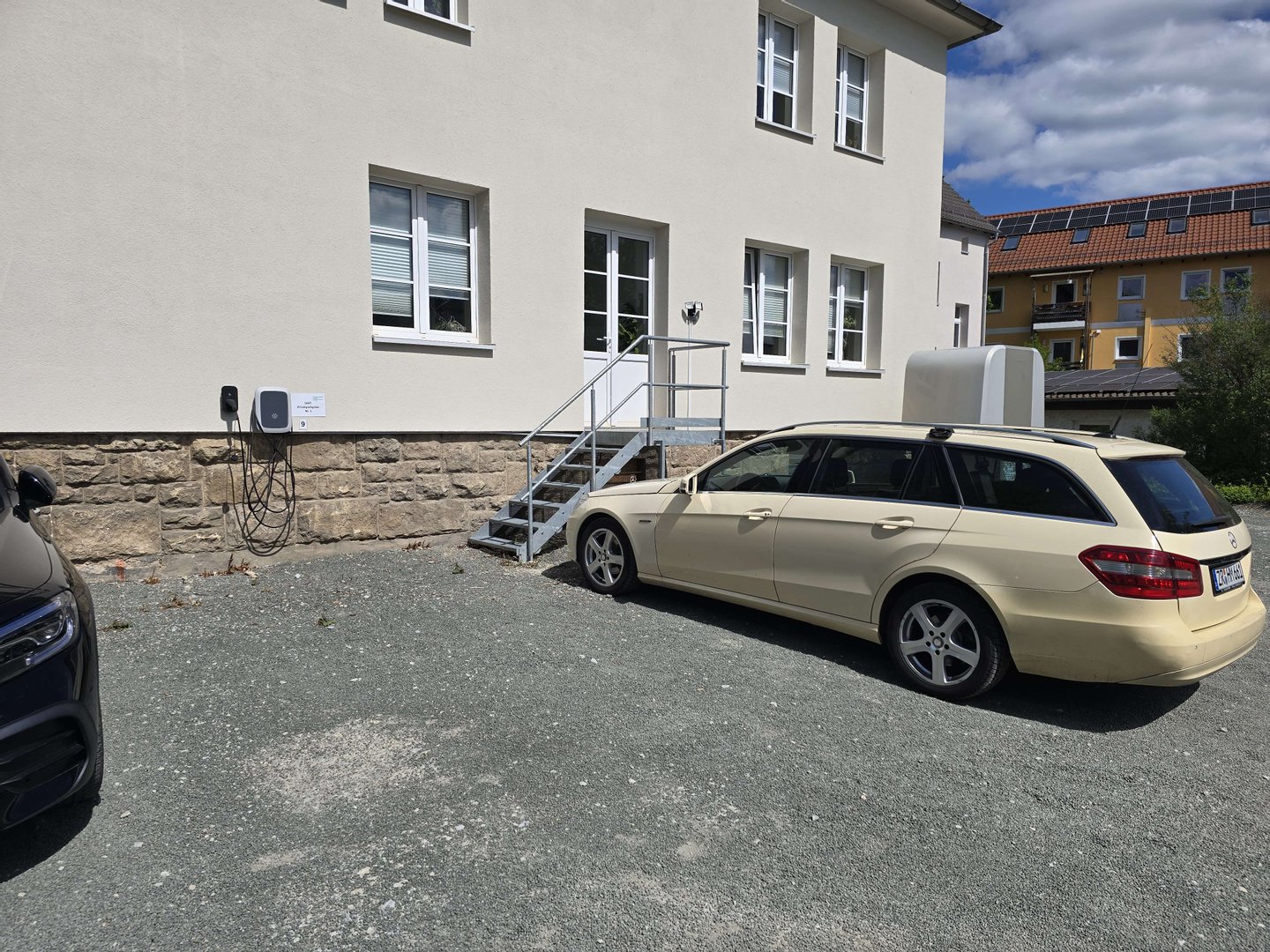Für Mitarbeiter und Besucher oder Bewohner stehen auf dem Grundstück 18 Stellplätze zur Verfügung. Ein Teil davon ist bereits vermietet, während weitere Parkplätze für Besucher genutzt werden können. Die vorhandene Infrastruktur ermöglicht zudem die Erweiterung der Ladeinfrastruktur für Elektrofahrzeuge.