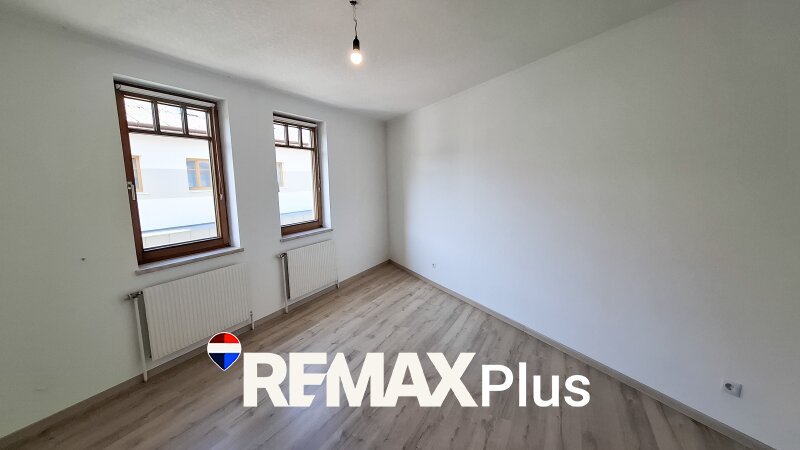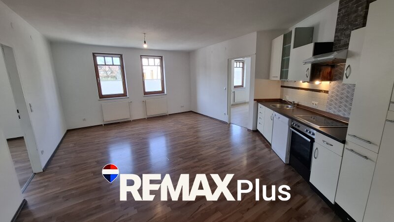 Beim Betreten der Wohnung gelangt man in einen Vorraum, welcher als Garderobe genutzt werden kann. Auf der linken Seite befindet sich ein separates WC. Rechts vom Vorraum liegt das Badezimmer, das mit einer Badewanne ausgestattet ist. Direkt anschließend an das Badezimmer befindet sich ein praktischer Schrankraum oder Abstellraum. Vom Vorraum aus geradeaus gelangt man in den Wohnbereich, der durch zwei Fenster besonders hell ist. Die offene Küche ist mit einer Einbauküche ausgestattet und fügt sich harmonisch in den Wohnraum ein. Vom Wohnbereich aus erreicht man zwei weitere Zimmer, die jeweils ebenfalls über zwei Fenster verfügen und sich flexibel als Schlafzimmer, Kinderzimmer, Büro oder Gästezimmer nutzen lassen. Abgesehen von der Küche und dem Badezimmer sind die Räume unmöbliert und bieten somit vielfältige Gestaltungsmöglichkeiten.