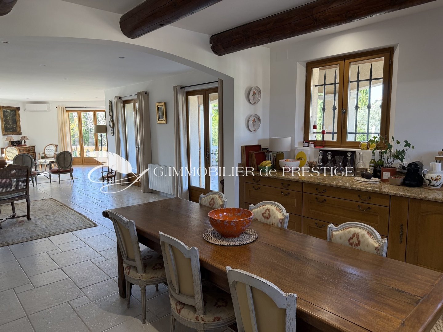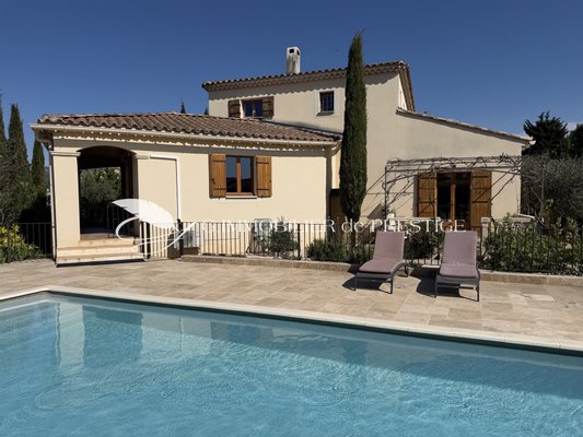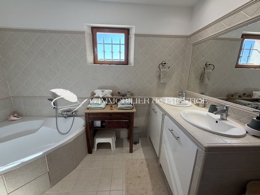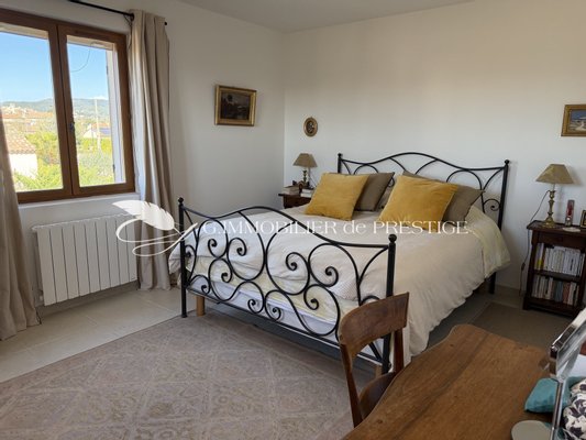 Im Herzen eines hübschen, blumengeschmückten Gartens mit Olivenbäumen bietet diese schöne Villa von 200 m² eine ruhige und friedliche Lebensatmosphäre unweit des Dorfzentrums. Oberhalb des durchbrochenen Tores zeichnet sich der Mont Ventoux ab. Ihre Aussicht begleitet uns auf einer schönen Terrasse, die von Osten nach Westen ausgerichtet ist und es ermöglicht, die Frühstücke im Sonnenaufgang und die Sommerabende in der Abendsonne zu genießen. Eine schöne, überdachte Veranda, eine Massivholztür – und wir befinden uns im Zentrum des Anwesens in einem geselligen und eleganten Lebensraum mit vielen Öffnungen. Die Edelholz-Küche ist üppig und warm, mit Holzbalken und Granitplatten bietet sie viel Platz zum Kochen und für ein großes Festmahl. Sie ist zum doppelten Wohnzimmer von Ost nach Süden offen. Eine Steinwand grenzt die Bereiche ab und integriert einen Kamin, der Komfort und Wohlbefinden bringt. Eine Krillon-Steinstreppe führt ins Obergeschoss, wo drei Schlafzimmer ein Badezimmer teilen. Separate Toiletten. Ein unabhängiger ebenerdiger Bereich besteht aus einem Schlafzimmer mit Dusche und öffnet sich zu einer intim im Schatten durch eine Rebe beschatteten Terrasse gegenüber dem Pool. Ideal zum Empfangen, er kann auch zu einer sehr schönen Haupt-Suite mit Ankleidezimmer und Bad werden, um barrierefrei zu leben. Der Pool ist vollständig sicher und von einer schönen Travertin-Plage umgeben. Eine doppelte geflieste Garage mit viel Lagerfläche in der Mezzanine. Eine äußerst gepflegte Residenz, die sowohl Haupt- als auch Zweitwohnsitz sein kann und keine Arbeiten erfordert. „Ich entdeckte diese Architektenvilla an einem sonnigen Sonntag und als ich die noblen Eingangstüren öffnete, war ich sofort verführt von der Harmonie der Räume und Öffnungen in einer echten Harmonisierung der Raumaufteilung. Von dort führt eine der vier Holz-Schiebtüren zum Garten und zum Pool, und man kann sich dort niederlassen, um den Vögeln zuzuhören, vor der postcard-ähnlichen Kulisse des Ventoux.“ Die Lokalisierung ist exakt. Von unserer Agentur verfasst, nicht von Künstlicher Intelligenz.