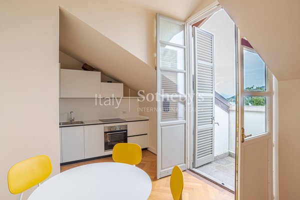 In the most refined setting of Arona, within the prestigious Palazzo Borromeo, an exclusive apartment immersed in nature and the privacy of traditional English-style gardens, where one can enjoy the beauty of its rose gardens. The apartment is located on