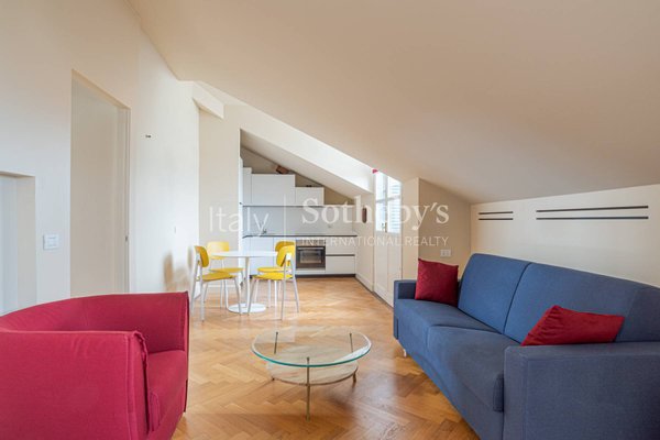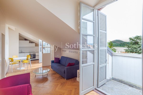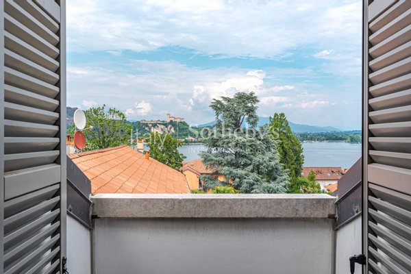 The apartment is located on the top floor of the building and features two prestigious views overlooking the Rocca di Arona and Angera. The property, fully furnished, is the result of a careful restoration and conservation project.
