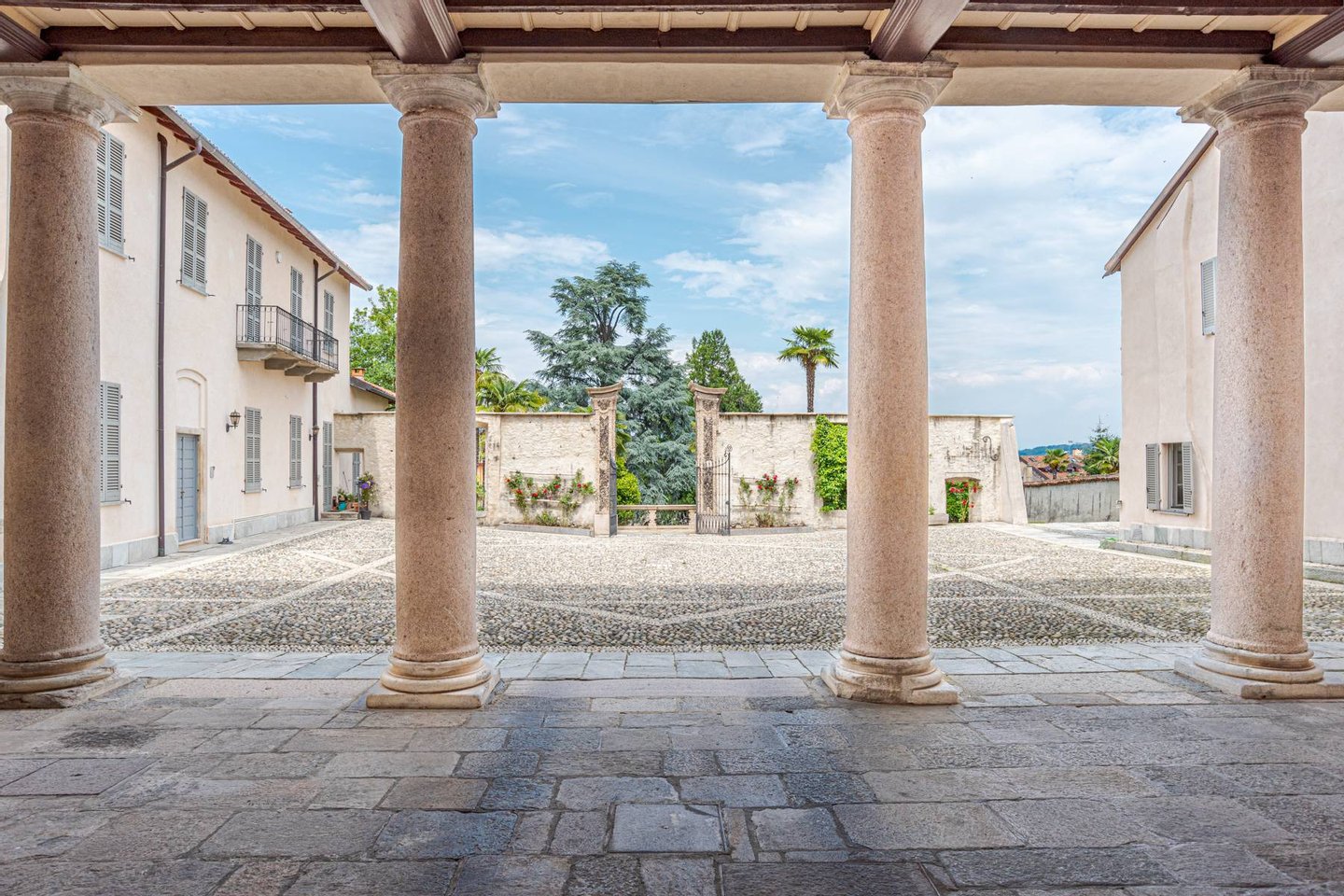 In the most refined setting of Arona, within the prestigious Palazzo Borromeo, an exclusive apartment immersed in nature and the privacy of traditional English-style gardens, where one can enjoy the beauty of its rose gardens.