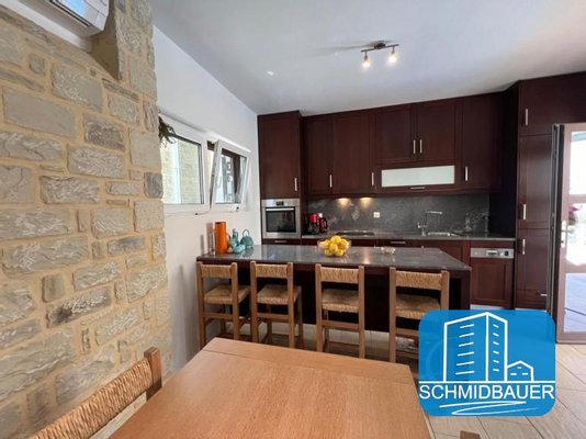 Diese wunderschöne, modern gebaute Villa auf einem 507 m² großen Grundstück wird Sie begeistern. Die zweistöckige, komplett möblierte Villa mit einer Gesamtfläche von 130 m² und einem großzügigen, 32 m² großen Pool lädt zu einzigartigen Momenten der Entspannung ein. Beim Betreten des Anwesens öffnet sich der Blick in den wunderschönen Außenbereich mit Pergola-Sitzbereichen für bis zu 10 Personen und dem Poolbereich mit Sonnenliegen und Pool. Die erste Ebene besteht aus einer modernen Küche mit hochwertigen Elektrogeräten und einem gemütlichen Essbereich. Ein geräumiges Wohnzimmer mit Meerblick und viel Stauraum bietet Platz für Ihre Gäste und Familie. Ein Badezimmer mit Dusche rundet den Innenbereich ab. Eine Innentreppe führt ins Obergeschoss, wo sich zwei geräumige Schlafzimmer und ein zweites Badezimmer mit Abstellraum und Waschküche befinden. Eine gemütliche Veranda bietet einen freien Blick auf die Südküste und das Dorf Listaros. Im Außenbereich rundet ein separates Gästezimmer mit kleinem Garten und Zugang zum Pool das Ambiente dieser Luxusimmobilie ab. Photovoltaik-Module sorgen für Strom und Heizung, während zwei weitere Kamine in den kälteren Monaten für eine warme Atmosphäre im Haus sorgen. Im Sommer sorgen drei Klimaanlagen in Kombination mit einer hervorragenden Isolierung für eine kühle Atmosphäre im gesamten Haus. Das Anwesen ist komplett eingezäunt und bietet so maximale Privatsphäre. Es verfügt über drei Parkplätze.