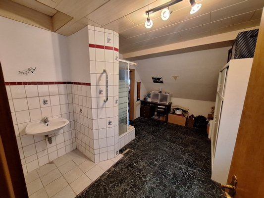 Der Dachboden bietet zusätzlichen Stauraum und die Kellerräume (hier ist noch ein Bad vorhanden) können gut als zusätzliche Lagerfläche genutzt werden.