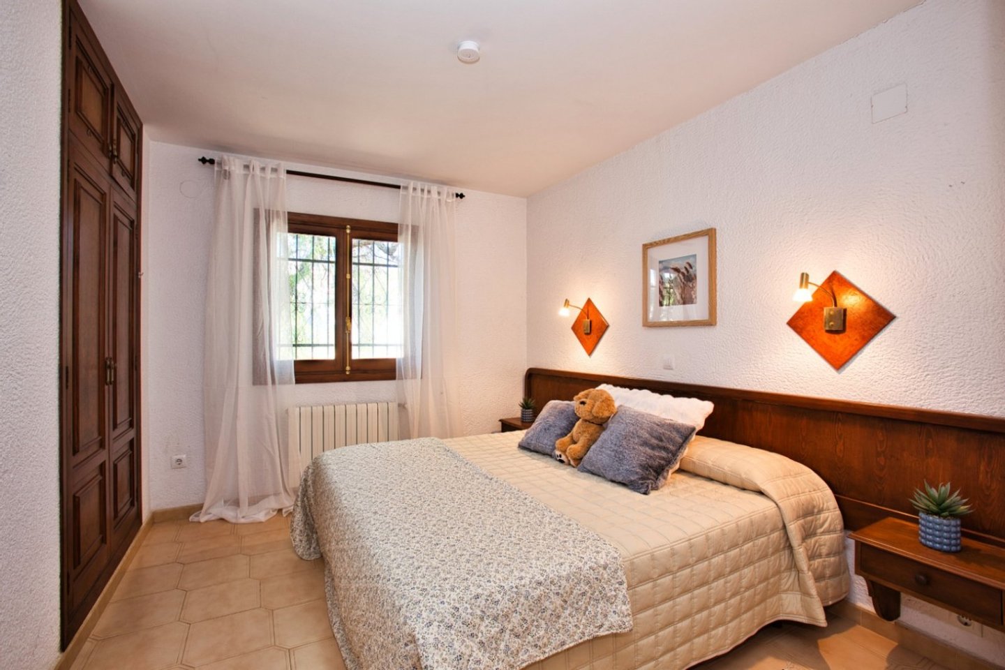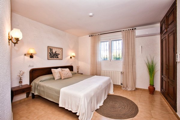 Diese Villa zum Verkauf in Benissa befindet sich auf einem fast ebenen und vollständig umzäunten Grundstück im Wohngebiet San Jaime. Das Haus ist nach Südwesten ausgerichtet und bietet von der Poolterrasse aus Meerblick und Blick auf den Peñon de Ifach. Bis auf ein paar Stufen ist das Haus ebenerdig. Über einige Stufen gelangt man auf die geräumige Veranda mit schönem Meerblick. Von hier aus gelangt man in das Wohnzimmer mit doppelter Deckenhöhe und Kamin. Dieses geht nahtlos in das Esszimmer über, das neben der offenen und voll ausgestatteten Küche liegt. Auf der anderen Seite des Salons befindet sich ein Wintergarten und einer zusätzlichen Terrasse. Die Villa verfügt über drei Schlafzimmer: ein geräumiges Hauptschlafzimmer mit eigenem Bad und zwei Schlafzimmer mit gemeinsamem Bad, alle mit Einbauschränken. Im Außenbereich finden Sie einen ausgewachsenen mediterranen Garten mit mehreren Sitzgelegenheiten, einen 11 × 4 m großen Pool, einen Grill und eine Außendusche. Ein Teil der Veranda ist verglast, sodass sie zu jeder Jahreszeit genutzt werden kann.