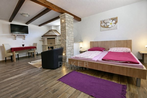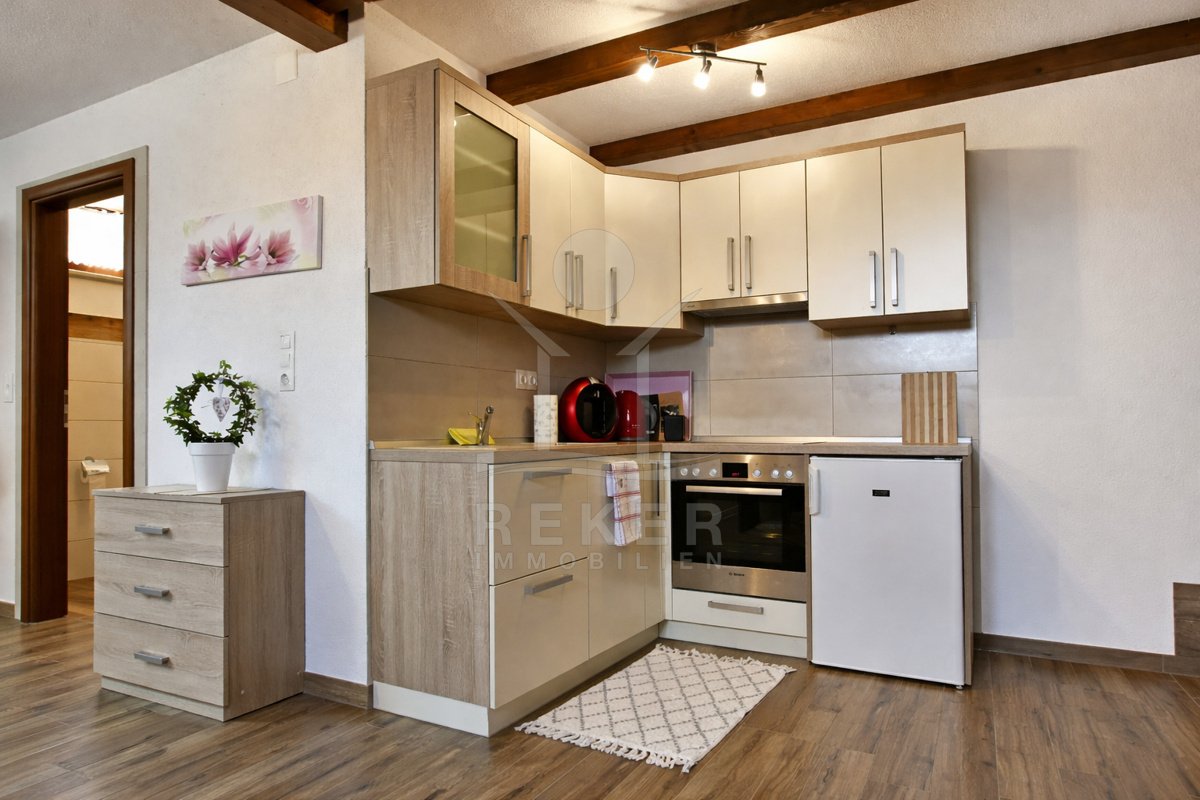 In einem ruhigen Dorf nahe Poreč, rund 6 Kilometer vom Meer entfernt, finden Sie dieses gepflegte Haus auf einem 1.089 m² großen Grundstück. Sie genießen eine entspannte Umgebung und erreichen die Küste schnell. Vier Stellplätze direkt am Haus bieten Ihnen zusätzlichen Komfort.