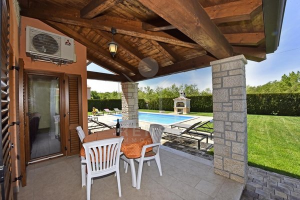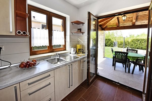 In einem ruhigen Dorf nahe Poreč, rund 6 Kilometer vom Meer entfernt, finden Sie dieses gepflegte Haus auf einem 1.089 m² großen Grundstück. Sie genießen eine entspannte Umgebung und erreichen die Küste schnell. Vier Stellplätze direkt am Haus bieten