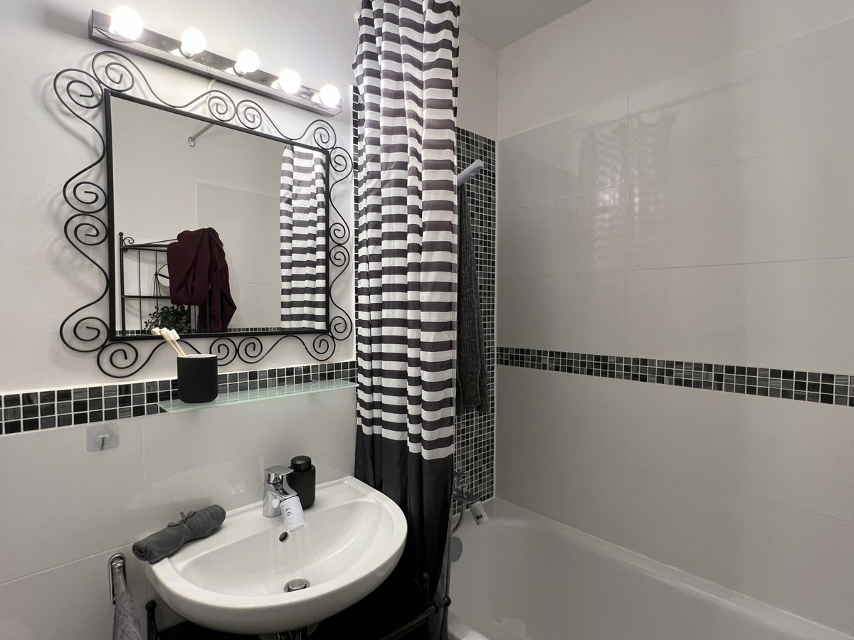 - saniertes Badezimmer mit Wanne, WC, Waschbecken, Spiegel