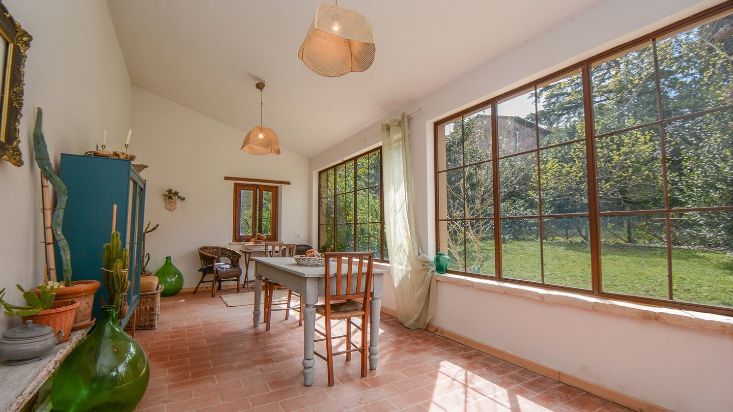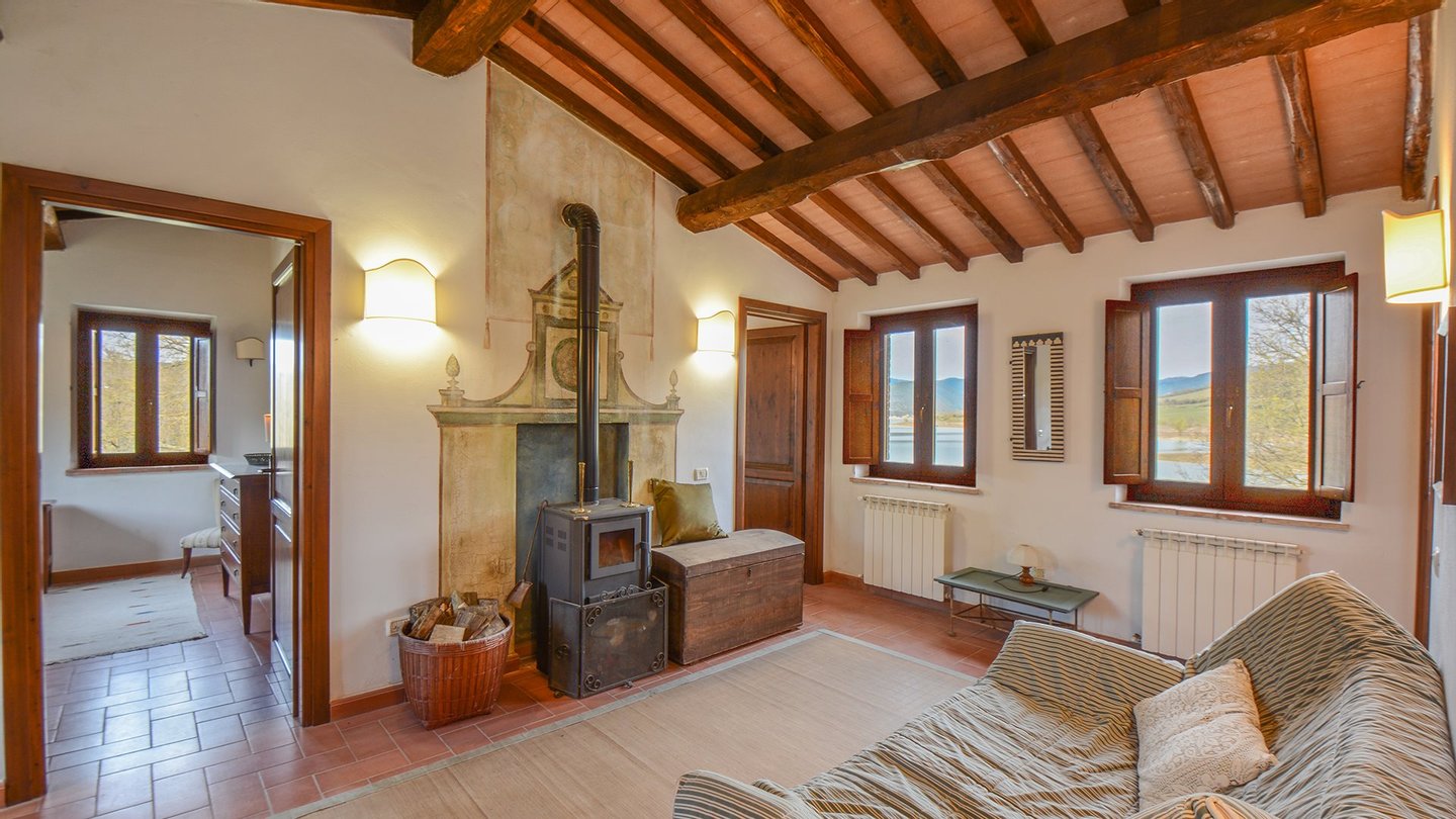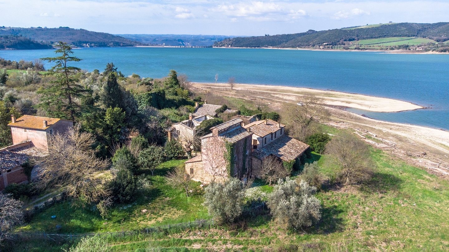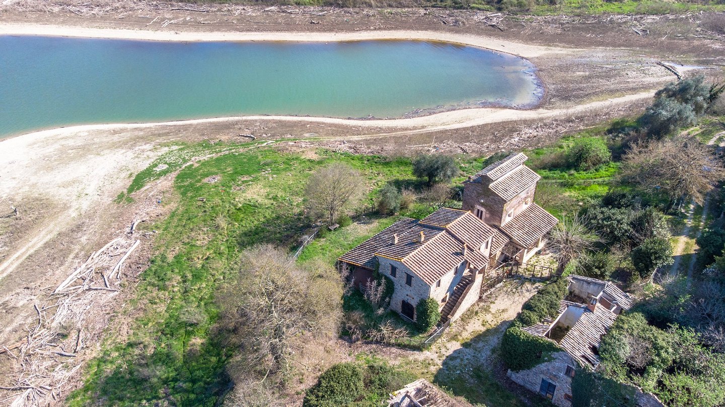 Inmitten einer außergewöhnlich schönen Naturlandschaft gelegen, bietet das Gehöft einen weiten, eindrucksvollen Blick auf den Corbara-See. Die Lage garantiert Ruhe und absolute Privatsphäre: Die von der Natur bestimmten Tagesrhythmen schenken stets neue Stimmungen, während Lichtspiele das Wasser beleuchten und zum Entspannen einladen.