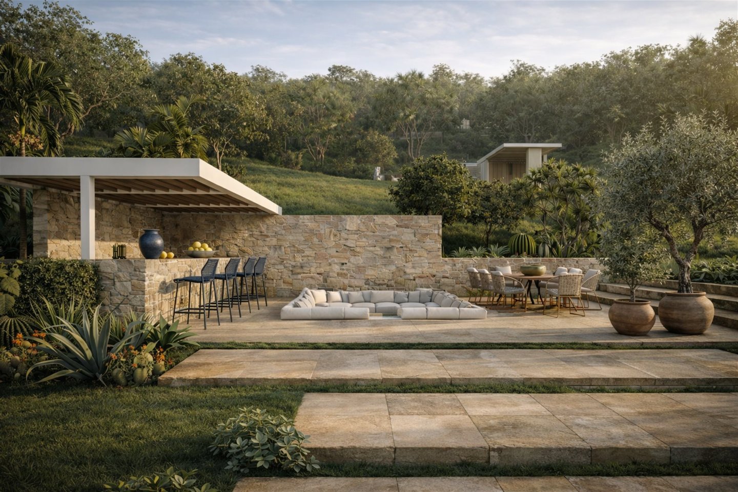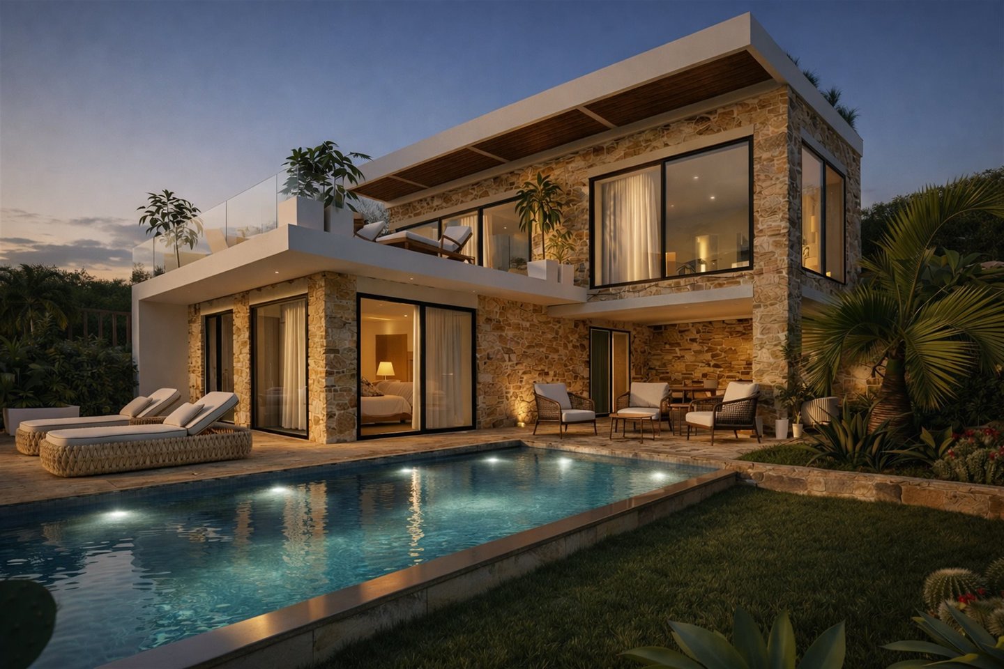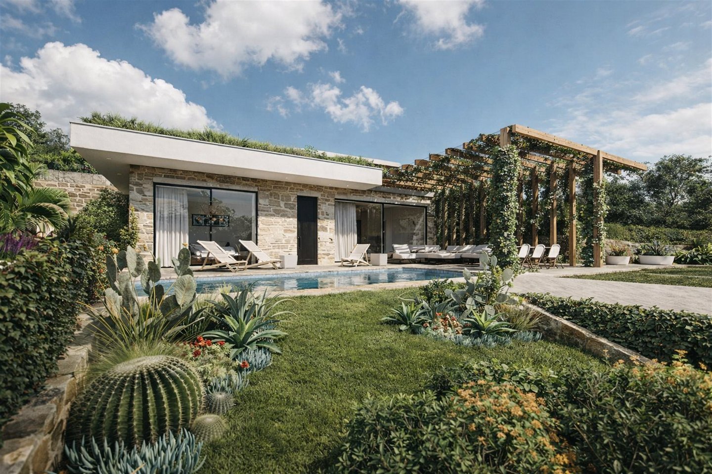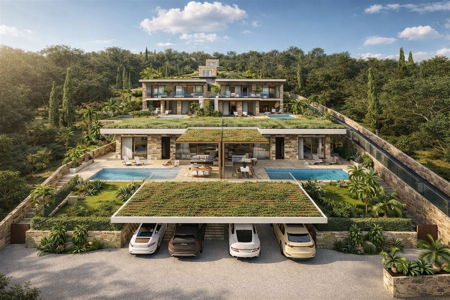 Marevia Two ist eine beeindruckende dreistöckige Villa in Yalova, einem der beliebtesten Resorts an der Westküste Messinias, erbaut in der bezaubernden Navarinobucht nahe Piräus (Pylos). Die Gegend ist berühmt für ihre authentische mediterrane Atmosphäre und Ruhe, mit türkisfarbenem Wasser, Sandstränden und Dünenlandschaften, die eine unvergessliche Landschaft schaffen. Das milde Klima reicht bis Dezember, was sie das ganze Jahr über ideal zum Aufenthalt macht, während der Flughafen Kalamata weniger als vierzig Minuten entfernt ist und leichten Zugang zu dieser hervorragenden Lage bietet. Die Villa mit einer Gesamtfläche von 184 m² auf einem 386 m² großen Grundstück verbindet traditionelle mediterrane Architektur harmonisch mit einer modernen, eleganten Ästhetik. Die Außenwände aus Naturstein, frei in einer wilden Anordnung gelegt, verleihen dem Anwesen einen einzigartigen Charakter, der an die traditionelle griechische Architektur erinnert, dabei jedoch einen absolut zeitgemäßen und eleganten Stil beibehält. Große Öffnungen und Schiebetüren ermöglichen eine nahtlose visuelle Verbindung zur natürlichen Umgebung und bringen Licht und Meeresblick ins Haus. Das Untergeschoss mit 86,26 m² ist als Wellness- und Fitnessbereich konzipiert und verfügt über ein voll ausgestattetes Fitnessstudio sowie einen Wellnessbereich, ideal zum Entspannen, Yoga-Sitzungen oder sogar für eine private Sauna oder Spa. Dieser Bereich kann auch für andere Nutzungen angepasst werden, z. B. Studio, Werkstatt oder Spielzimmer, je nach den Bedürfnissen der Eigentümer. Im Erdgeschoss mit 95,16 m² befinden sich die privaten Wohnbereiche der Villa, designed für maximalen Komfort und Funktionalität. Das Haupt-Schlafzimmer verfügt über ein großes En-Suite-Badezimmer mit hochwertigen sanitären Anlagen, es gibt ein zweites vollständig ausgestattetes Schlafzimmer und einen weiteren flexiblen Raum, der als Schlafzimmer oder Home-Office genutzt werden kann. Ein weiteres Bad bedient die restlichen Räume dieser Ebene. Große Schiebetüren führen zum Außenbereich, wo ein privater Pool, Lounge-Möbel und ein Garten das ideale Ambiente zum Entspannen, Bewirten und Geselligkeit mit Freunden und Familie schaffen. Der erste Stock mit 86,99 m² beherbergt den Hauptlebensbereich der Villa, der Wert auf Komfort, Funktionalität und modernes Wohnen legt. Dieser offene Bereich umfasst eine voll ausgestattete Küche, Essbereich und einen zusätzlichen Sitzbereich. Es gibt auch eine Gästetoilette. Große Schiebetüren führen zu einer großzügigen Terrasse mit bequemen Sitzgelegenheiten, ideal für Familien- und gesellschaftliche Zusammenkünfte, mit Blick auf die einzigartige Aussicht und die natürliche Umgebung. Marevia Two vereint Luxus mit authentischem mediterranem Charme und bietet ein Zuhause, in dem jedes Detail sorgfältig auf Komfort, Funktionalität und ästhetischen Genuss ausgelegt ist, wodurch es ideal entweder als privater Wohnsitz oder für luxuriöse Ferien im Herzen Messinias ist.