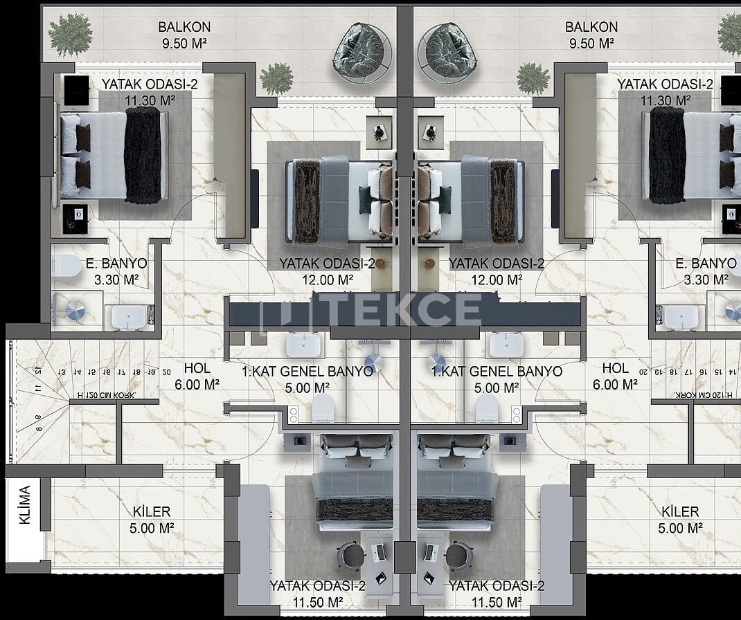Doppelhaushälfte-Villa Bozbük Milas Mugla