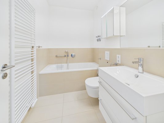 Diese perfekt geschnittene Wohnung befindet sich in einem hochwertigen Neubaukomplex aus dem Jahr 2020. Mit insgesamt 86 m² bietet sie Platz für 3 Zimmer, 2 Bäder und einen Balkon mit Süd-Ost Ausrichtung. Sie verfügt über ein Duschbad sowie ein Wannenbad und ist mit Parkett und Fußbodenheizung ausgestattet. Die voll ausgestattete Küche im modernen Stil lädt zum Kochen und Verweilen ein.