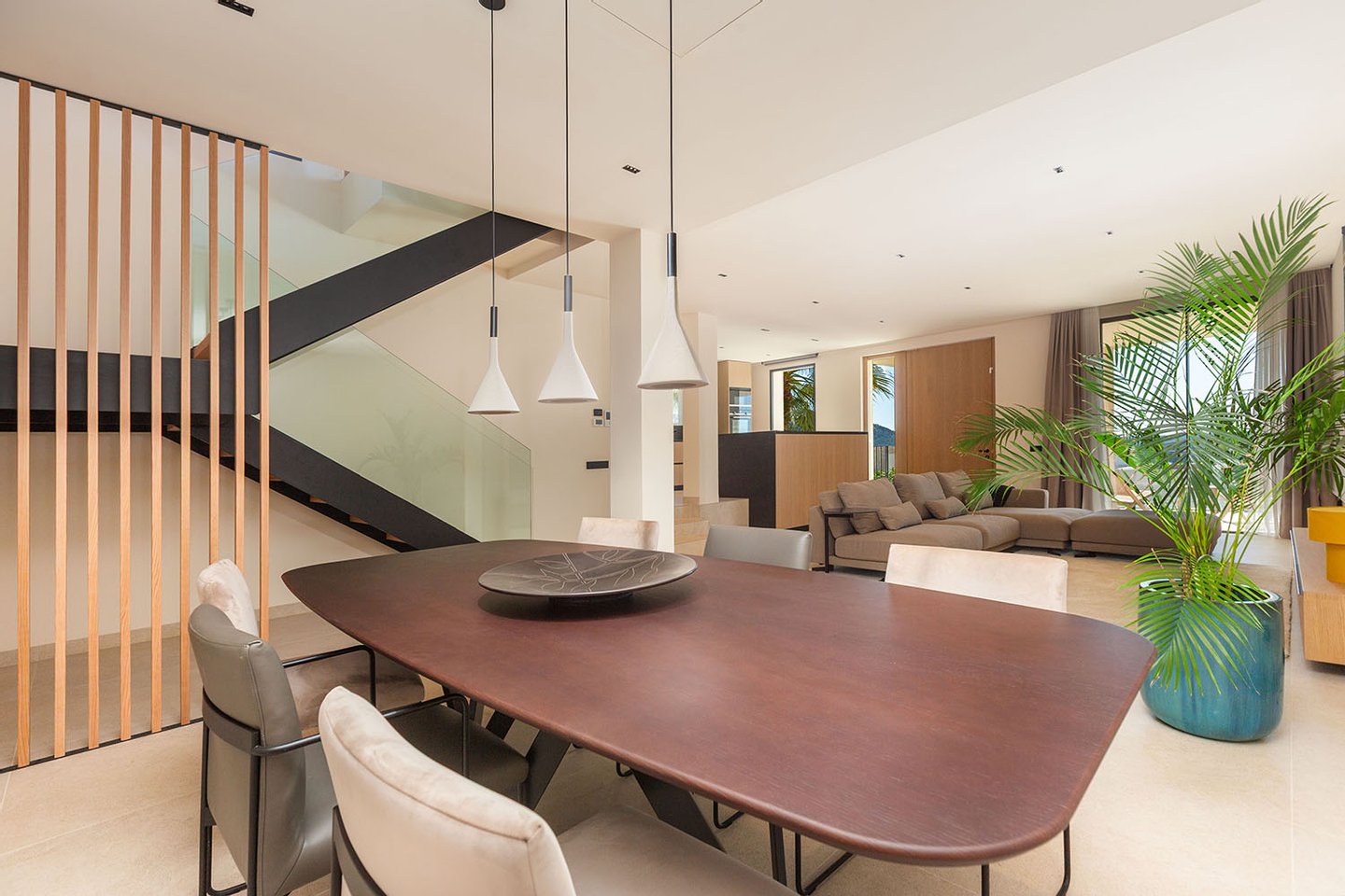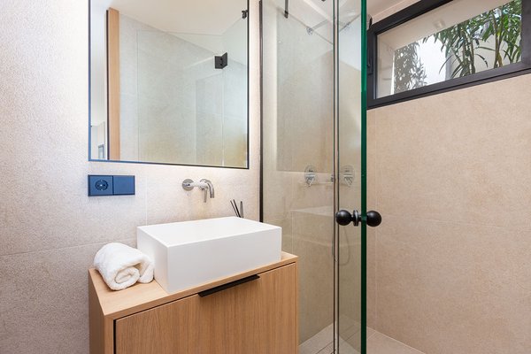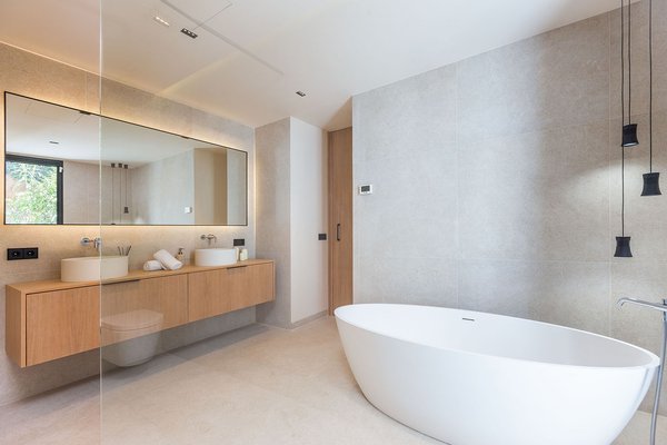 Die im Jahr 2024 fertiggestellte Immobilie erstreckt sich über zwei Ebenen und überzeugt durch eine moderne, klare Architektur sowie eine hochwertige Bauausführung. Im Inneren eröffnet sich ein großzügiger, lichtdurchfluteter Wohn- und Essbereich mit offen gestalteter, voll ausgestatteter Einbauküche. Bodentiefe Fenster schaffen fließende Übergänge zu den Außenbereichen und lassen Innen- und Außenraum harmonisch miteinander verschmelzen. Insgesamt stehen drei komfortable Schlafzimmer und drei stilvoll ausgestattete Badezimmer zur Verfügung, eines davon en suite.