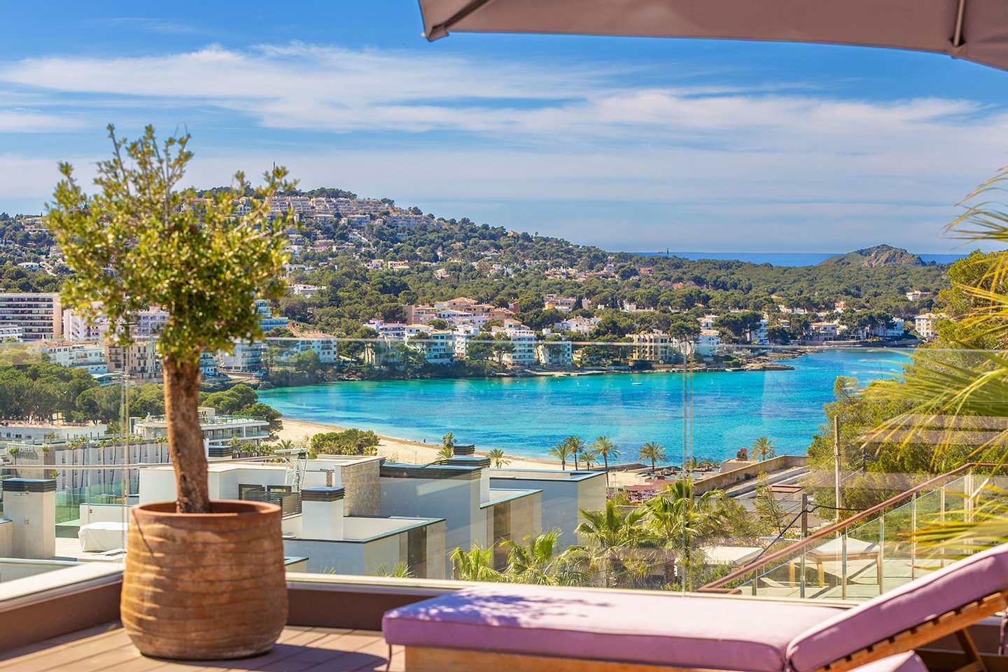 Diese exklusive Neubauvilla befindet sich in erhöhter, ruhiger Wohnlage oberhalb der malerischen Sandbucht von Santa Ponsa und vereint Privatsphäre mit einer hervorragenden Anbindung an das Ortszentrum, das in wenigen Minuten erreichbar ist. Die