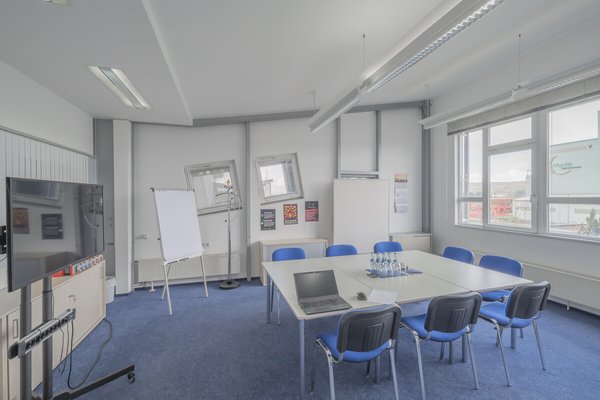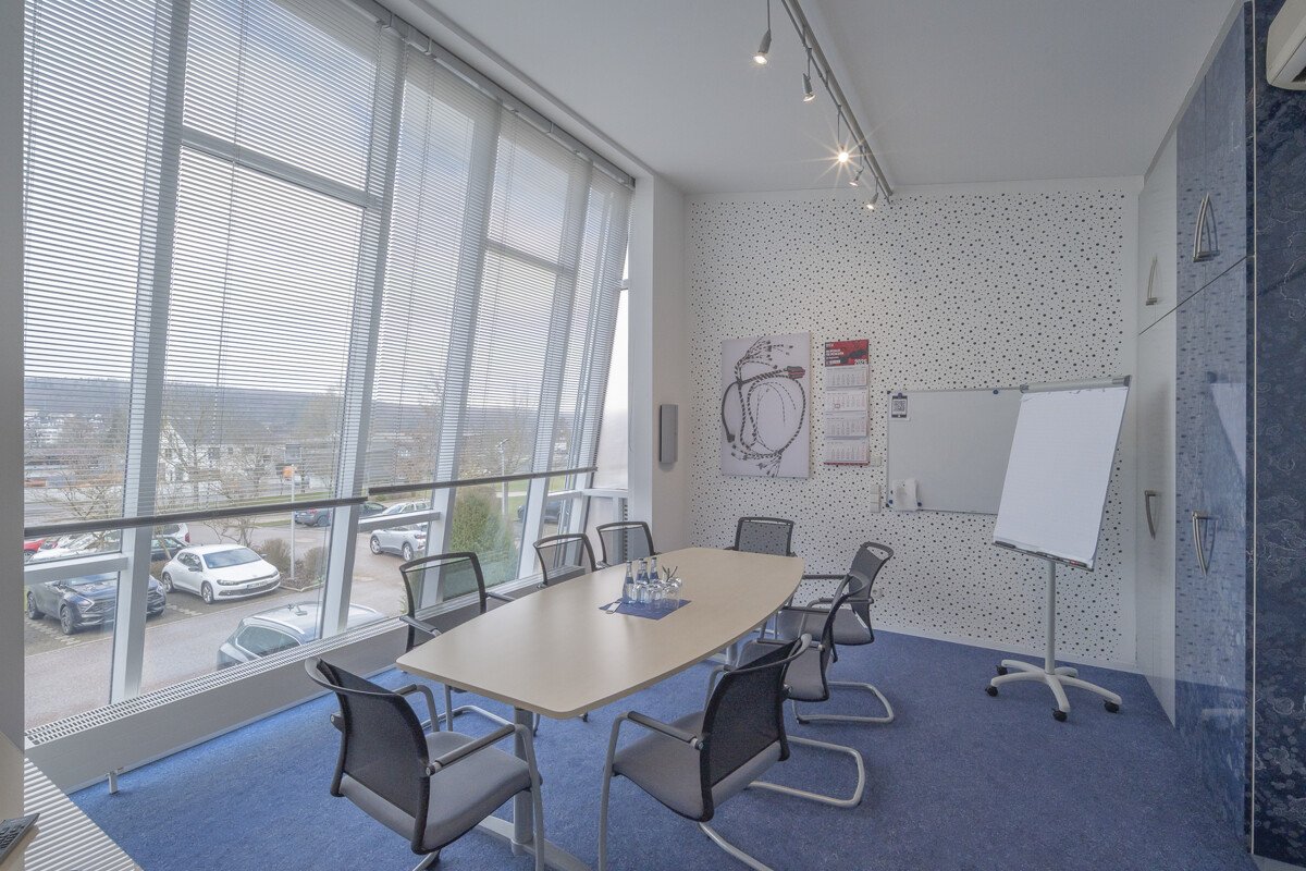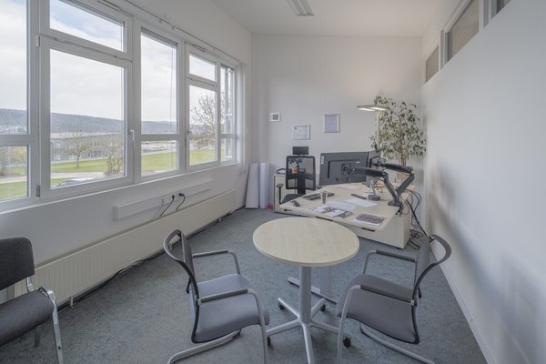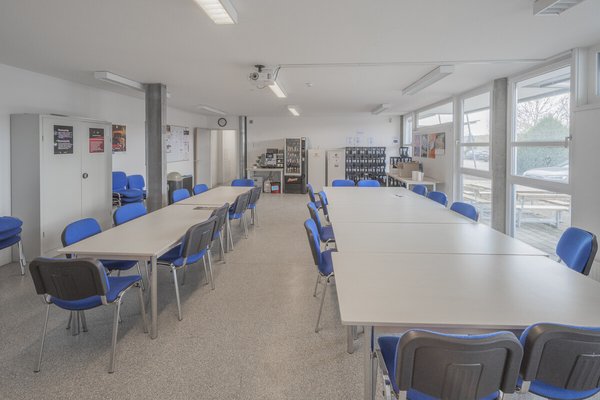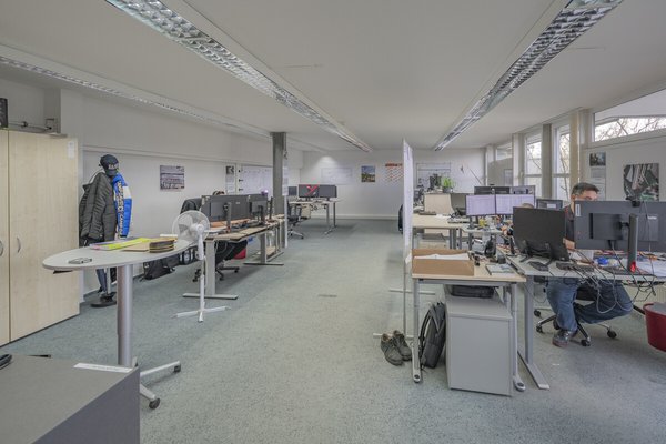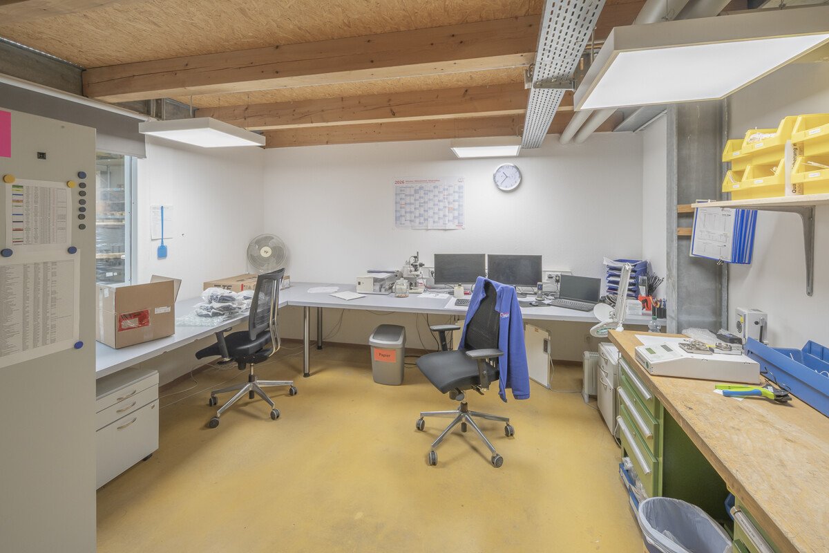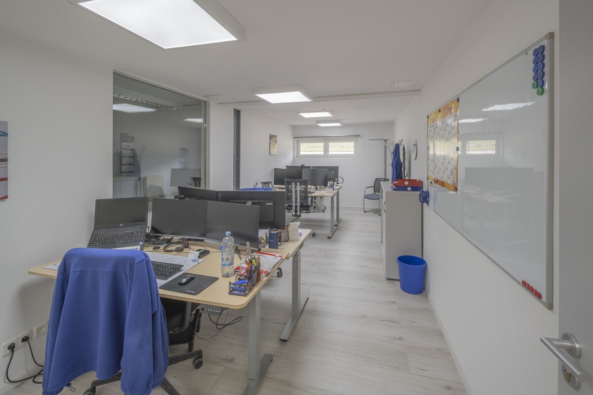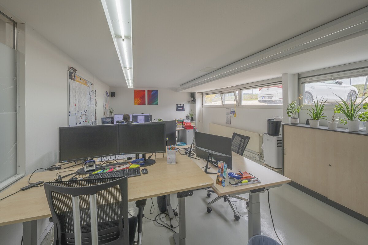 Im Verwaltungsbereich befinden sich Büroflächen mit vielfältigen Nutzungsmöglichkeiten (Empfang, Einzelbüros, Besprechungsräume). Ergänzt wird das Objekt durch ein Kundencenter, Kantine/Aufenthaltsraum mit Küchenzeile sowie Sozialräume. Die Gebäude sind netzwerkverkabelt, verfügen über Druckluftanschlüsse, Brandmelde- und Alarmanlage sowie einen klimatisierten Serverraum. Das Gelände ist umzäunt.