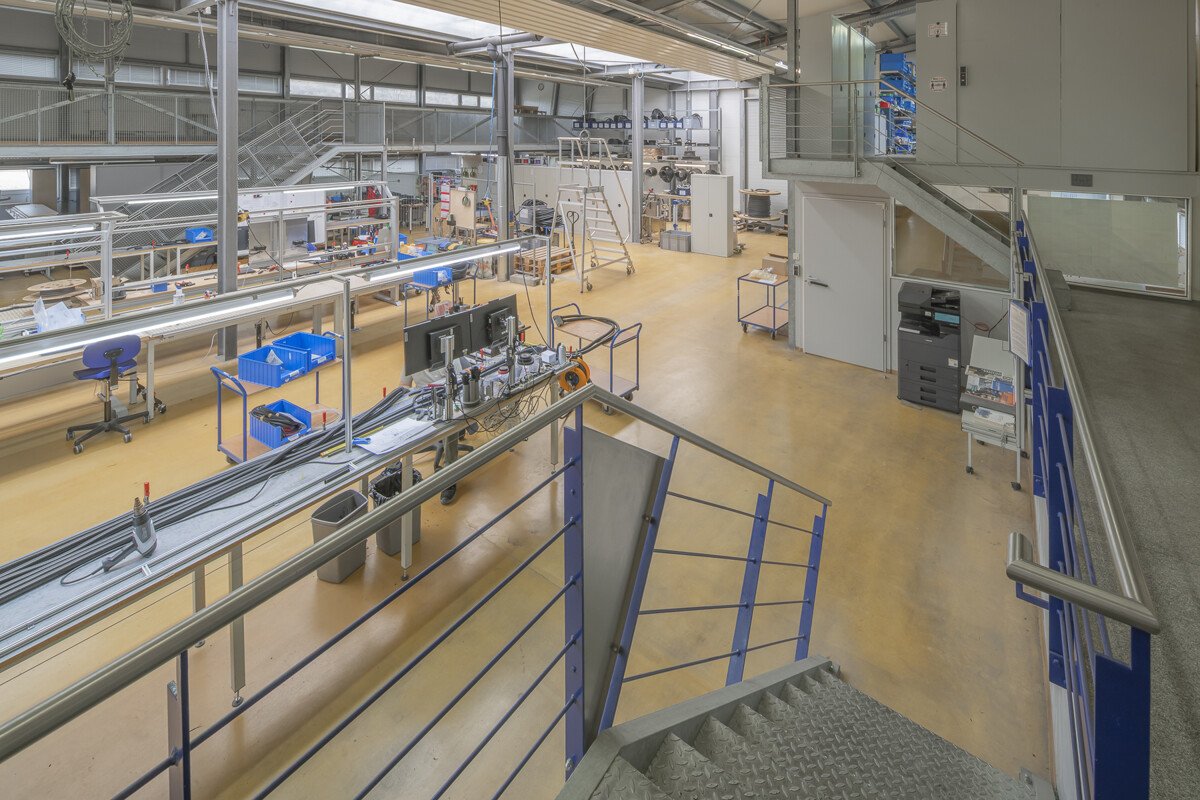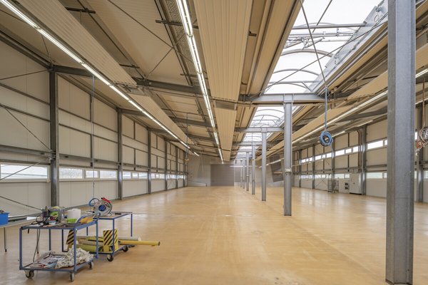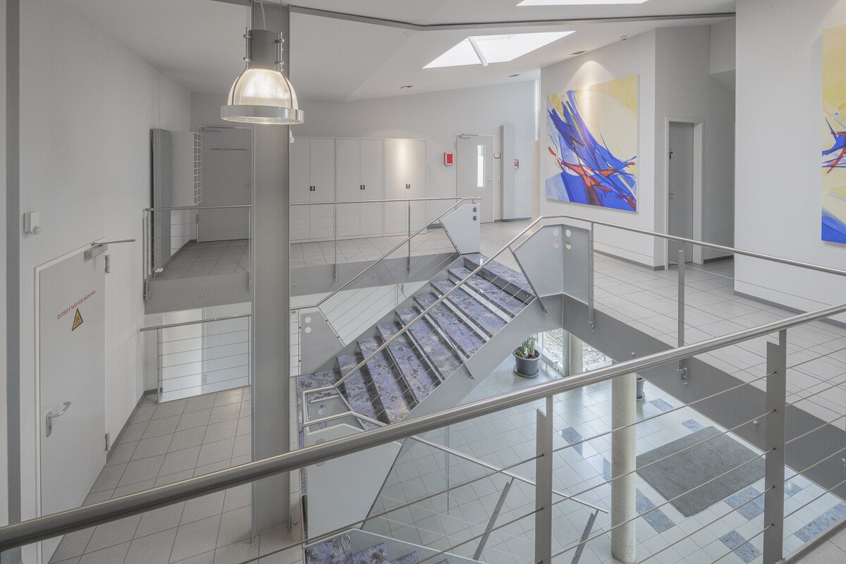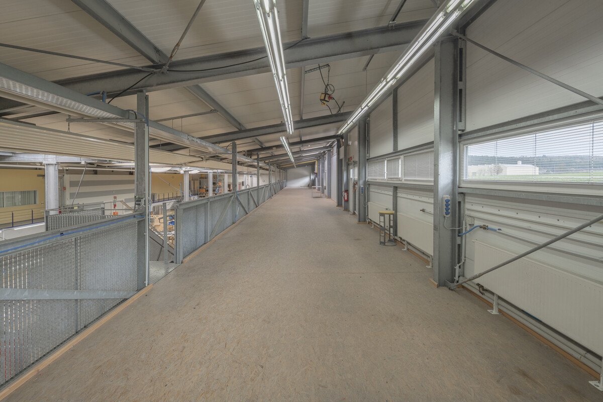 Die Hallen verfügen über eine Höhe von ca. 4,6 m, belastbare Magnesit-Industrieböden (bis ca. 7 t/m²) sowie zwei überdachte und befahrbare LKW-Rampen. Eine separate LKW-Zufahrt ist vorhanden, wodurch optimale Logistikabläufe gewährleistet sind. Die Einrichtung von Produktionslinien (bis ca. 100 m Länge) ist möglich.