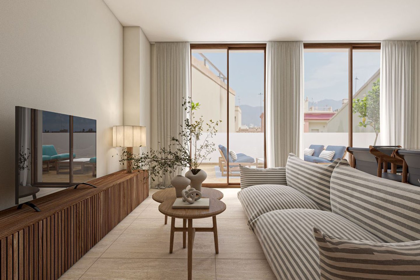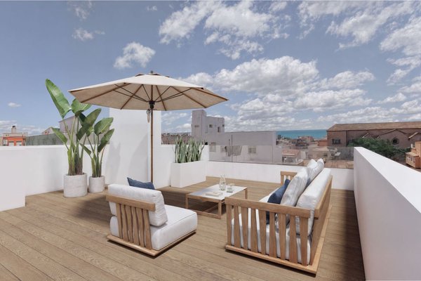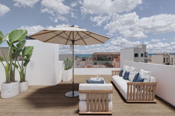 Dieses sonnige Penthaus befindet sich in einem modernen Neubau mit lediglich vier Wohneinheiten und Aufzug in beliebter Lage im renommierten Küstenviertel El Molinar. Das ehemalige Fischerdorf hat sich zu einer der begehrtesten Wohnlagen Palmas entwickelt und vereint auf einzigartige Weise traditionellen Charme mit zeitgemäßem Lifestyle. Historische Fischerboote liegen hier Seite an Seite mit stilvollen Boutique-Hotels, gehobenen Restaurants und liebevoll geführten, lokalen Geschäften. Die unmittelbare Nähe zum Meer sowie die beliebte Promenade laden zu entspannten Spaziergängen, Fahrradtouren oder Yogastunden unter freiem Himmel ein. Die Altstadt von Palma ist in nur fünf Minuten erreichbar, während sämtliche Einrichtungen des täglichen Bedarfs bequem fußläufig zur Verfügung stehen. Diese Kombination aus ruhiger, maritimer Atmosphäre und urbaner Nähe macht die Lage besonders attraktiv.