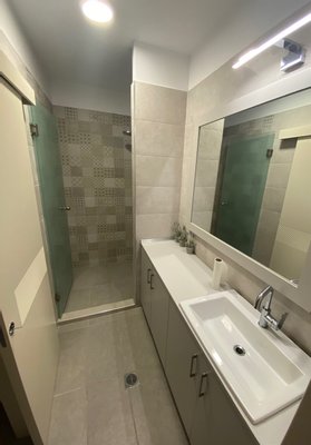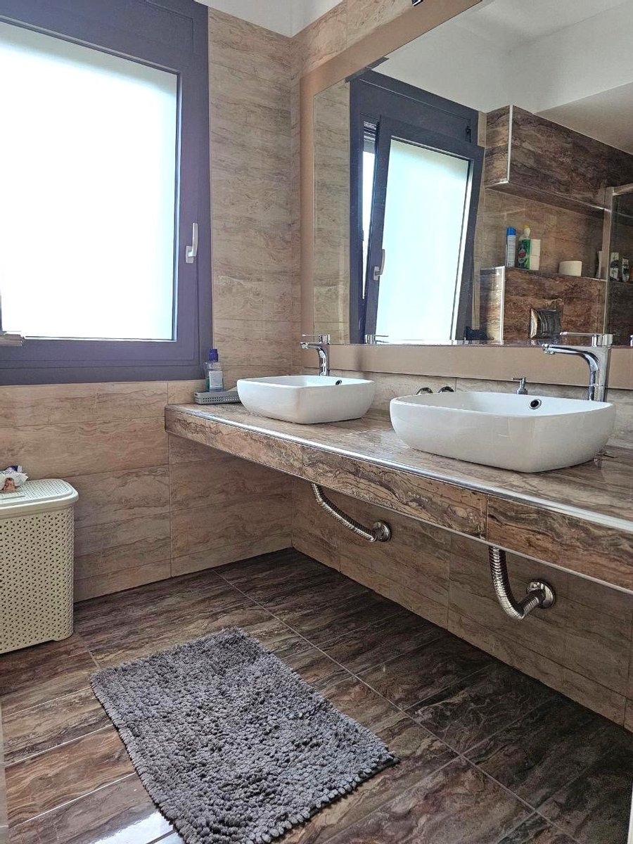 Im ersten Stock 3 Schlafzimmer und 2 Badezimmer, alle Schlafzimmer mit Balkon (Gesamtfläche 35 m²). Hauptschlafzimmer mit eigenem Bad und Ankleidezimmer. Großzügige, französische Panoramafenster mit Blick auf das Meer, großzügige Terrassen, von Pinien beschattete Balkone.
