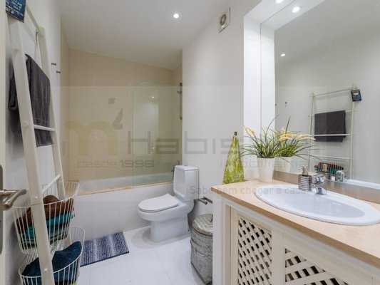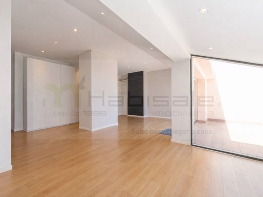 Wohnung mit Wohn- und Küchenbereich im Open-Space-Konzept, wodurch ein großzügiges und modernes Ambiente entsteht. Die Küche ist vollständig ausgestattet und das Wohnzimmer verfügt über einen Kamin, der eine gemütliche Atmosphäre für gemeinsame Momente schafft. Von diesem Bereich aus besteht direkter Zugang zu einem 17 m² großen Balkon, der vom Wohn- und Küchenbereich gemeinsam genutzt wird. Die Immobilie verfügt zudem über eine Zentralheizung in allen Räumen.