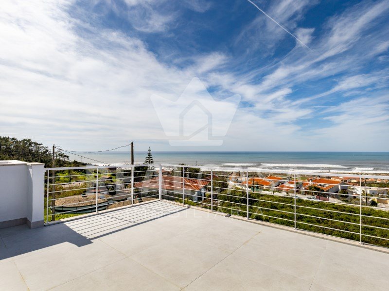 On the upper floor, you will find a stunning terrace the standout feature of this home offering breathtaking views over Praia da Murtinheira, the perfect setting to relax at sunset or entertain family and friends.