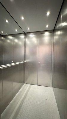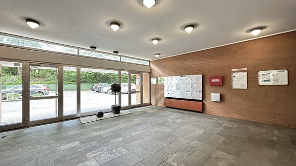 Zwei Aufzüge im Haus sorgen zudem für einen bequemen Zugang zur Wohnung auf der 12. Etage. Auf der Vorderseite des Hauses kommt man ohne Barriere zum Aufzug, in den Keller und in die Etage der Wohnung.