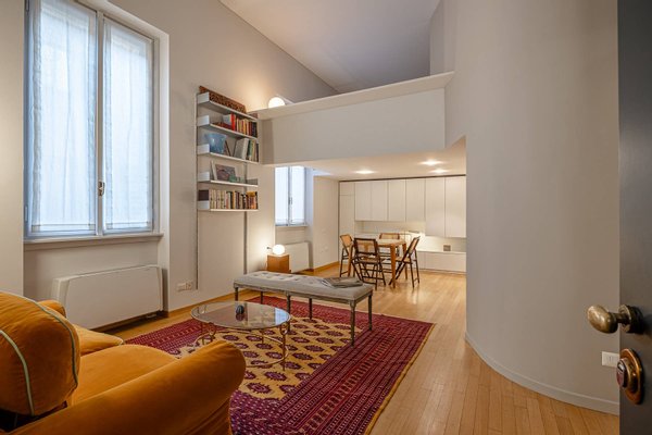 Located in a prestigious period building in the heart of the charming and highly sought-after Brera district, this elegant duplex apartment has been recently renovated.