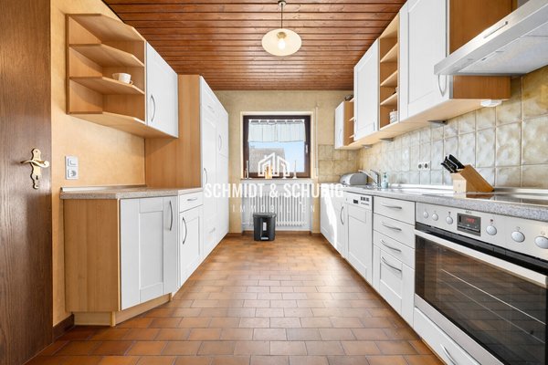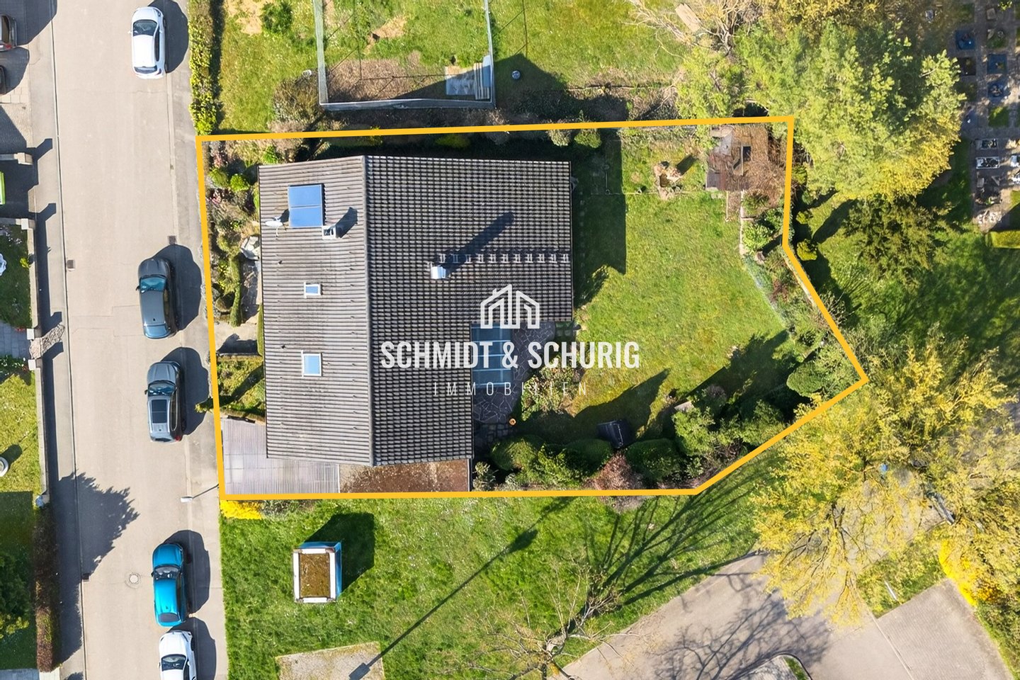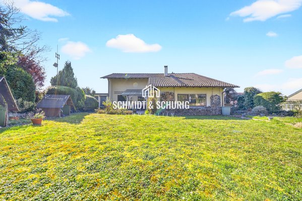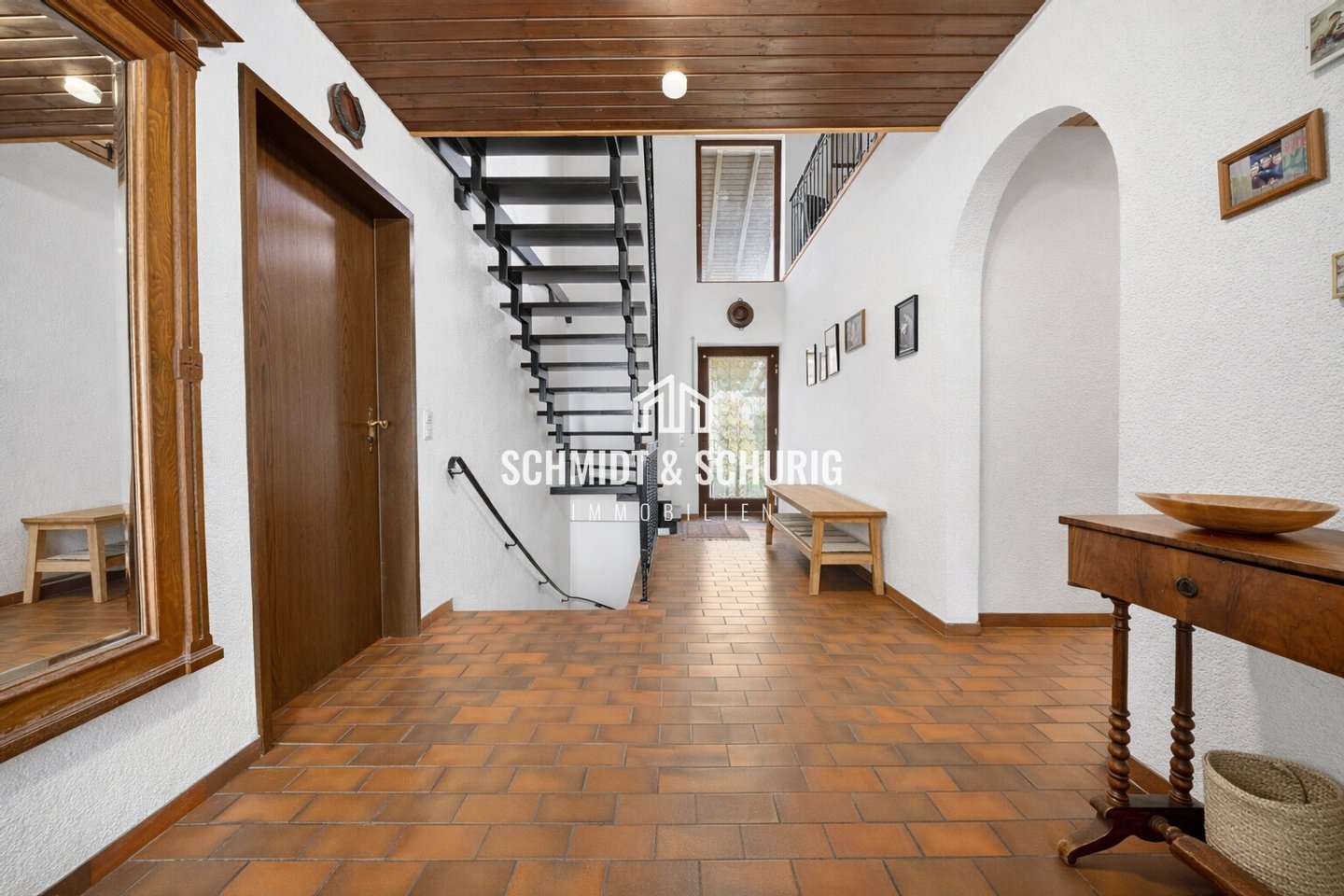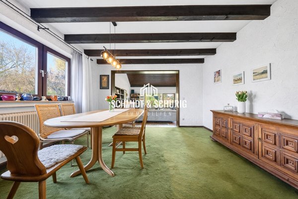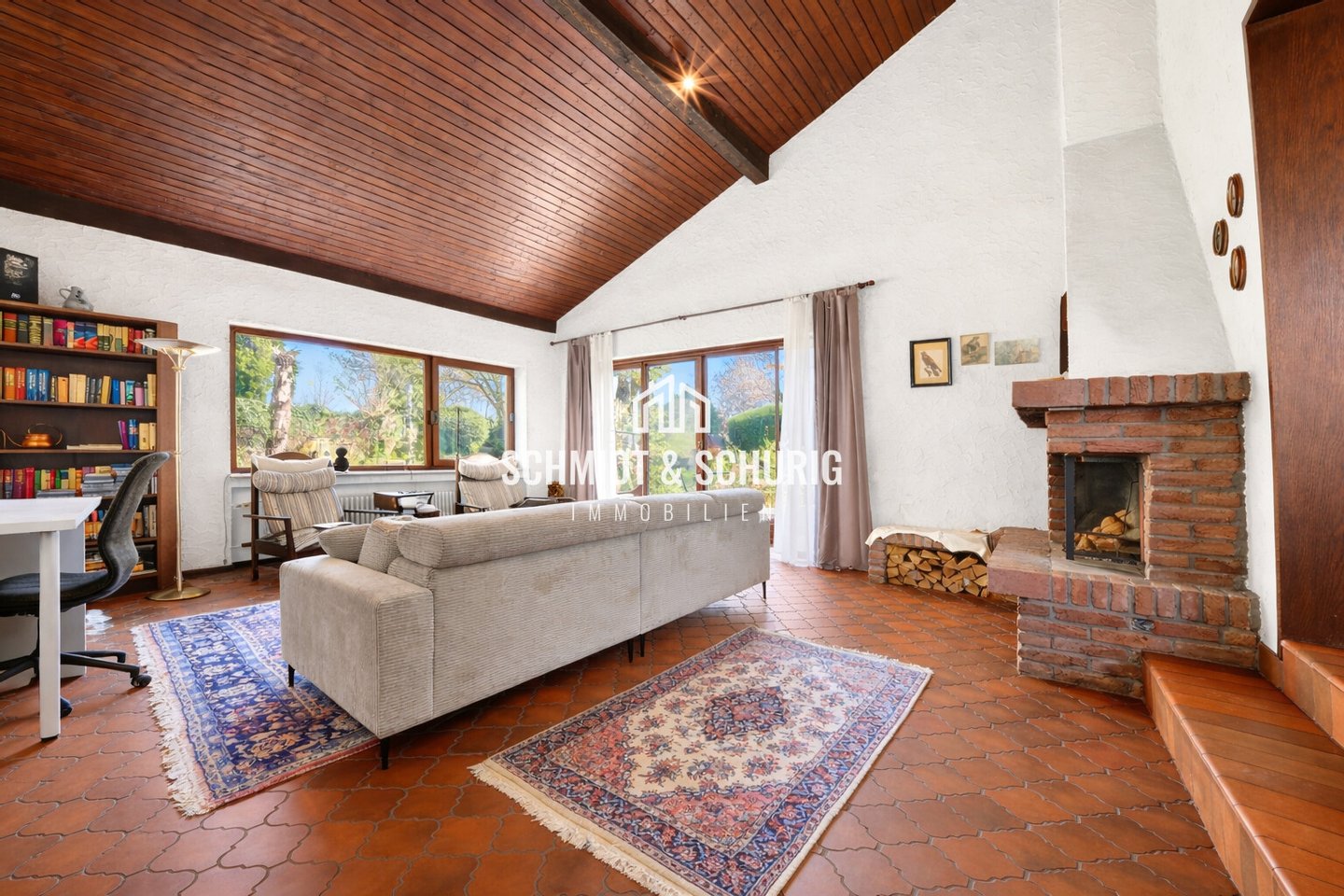 Sechs Zimmer, darunter fünf Schlafzimmer, bieten ideale Voraussetzungen für Familien und flexible Nutzungsmöglichkeiten, etwa für Kinderzimmer, Homeoffice oder Gästezimmer. Der offen gestaltete Wohn- und Essbereich schafft ein freies Raumgefühl und ermöglicht – ebenso wie der Eingangsbereich – den direkten Zugang zur Terrasse und in den Garten. Die Küche ist separat angelegt, ein Gäste-WC ergänzt das Raumangebot. Ein Kamin ist vorhanden, jedoch aktuell nicht genehmigt.