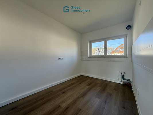 Die Küche bietet ausreichend Platz für eine individuell gestaltete Einbauküche, sodass Sie Ihre persönlichen Vorstellungen und Wünsche bei der Küchengestaltung frei umsetzen können.