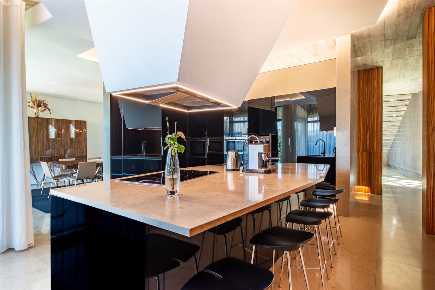 Unter der Signatur des renommierten Architekten Sérgio Borges zeichnet sich dieses Einfamilienhaus durch sein modernes Design und die hohe Bauqualität aus. Wärme- und Schalldämmung wurden durch fortschrittliche technische Lösungen sichergestellt, darunter Außenisolierung mit Kork, Ziegelstein, projektiertes Polyurethan und doppelte Wände aus Rigipsplatten mit Steinwolle. Die Innenraumverteilung wurde konzipiert, um Funktionalität, Privatsphäre und natürliche Lichtzufuhr zu maximieren.