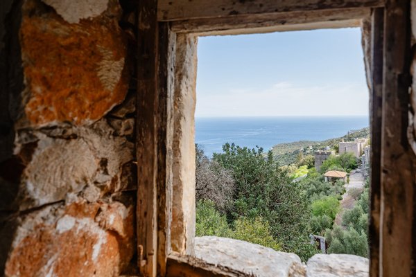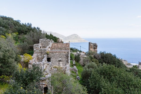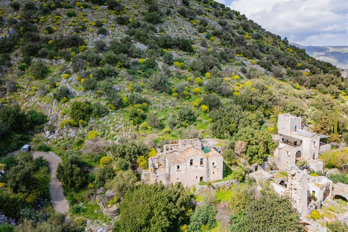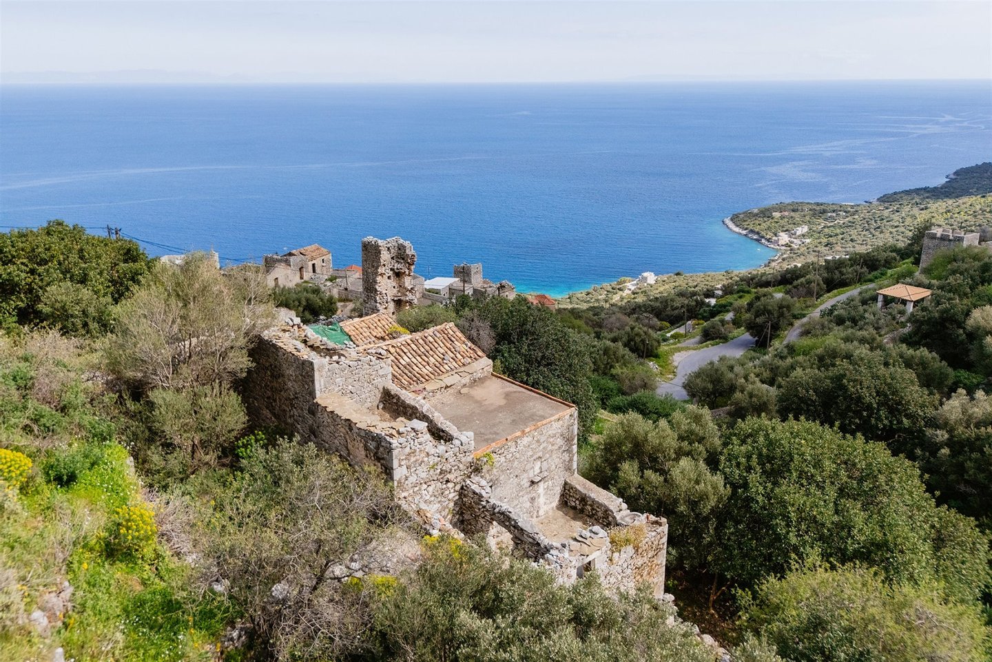 Einziges Steinhaus in Mani, Laconia, in einer üppigen Umgebung gelegen und mit freier Aussicht auf das Meer.