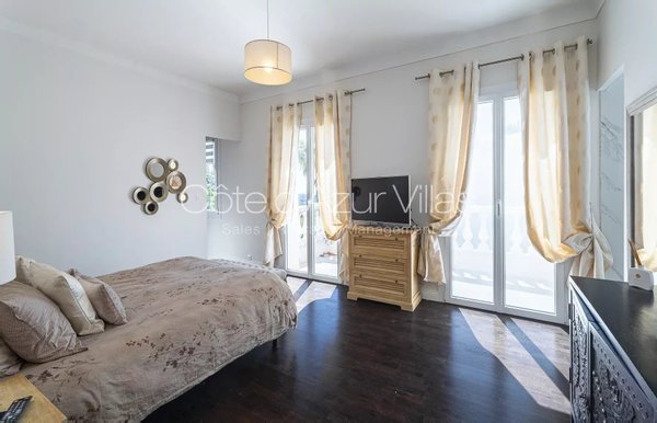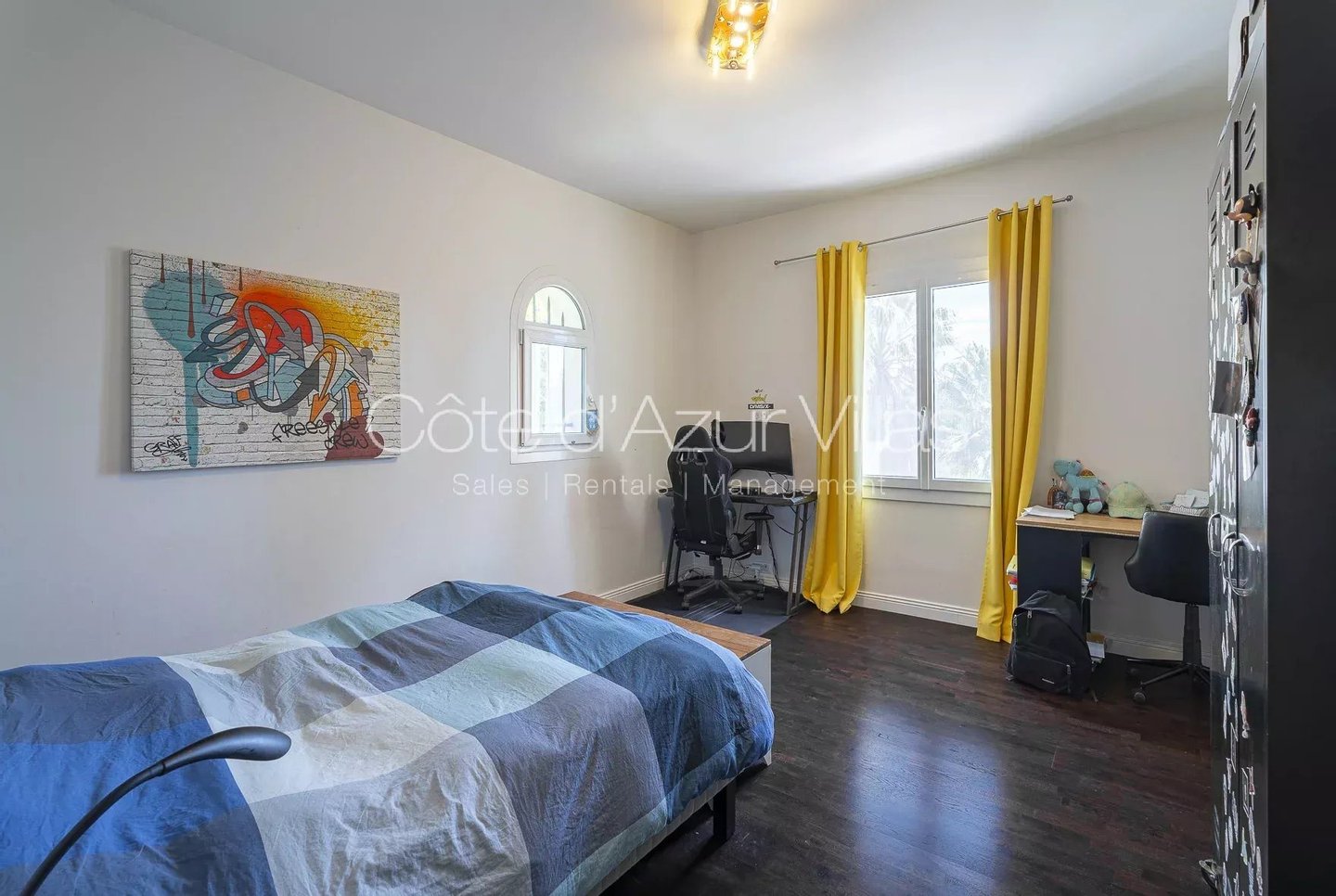 Auf der oberen Etage profitiert eine prachtvolle Hauptsuite von einer Terrasse mit Panorama-Blick auf die Hügel und das Meer in der Ferne, von einem großzügigen Ankleidezimmer und einem Badezimmer mit gepflegten Ausstattungen. Drei weitere Schlafzimmer, jedes mit Balkon oder Terrasse, empfangen Familie und Gäste in optimalem Komfort.