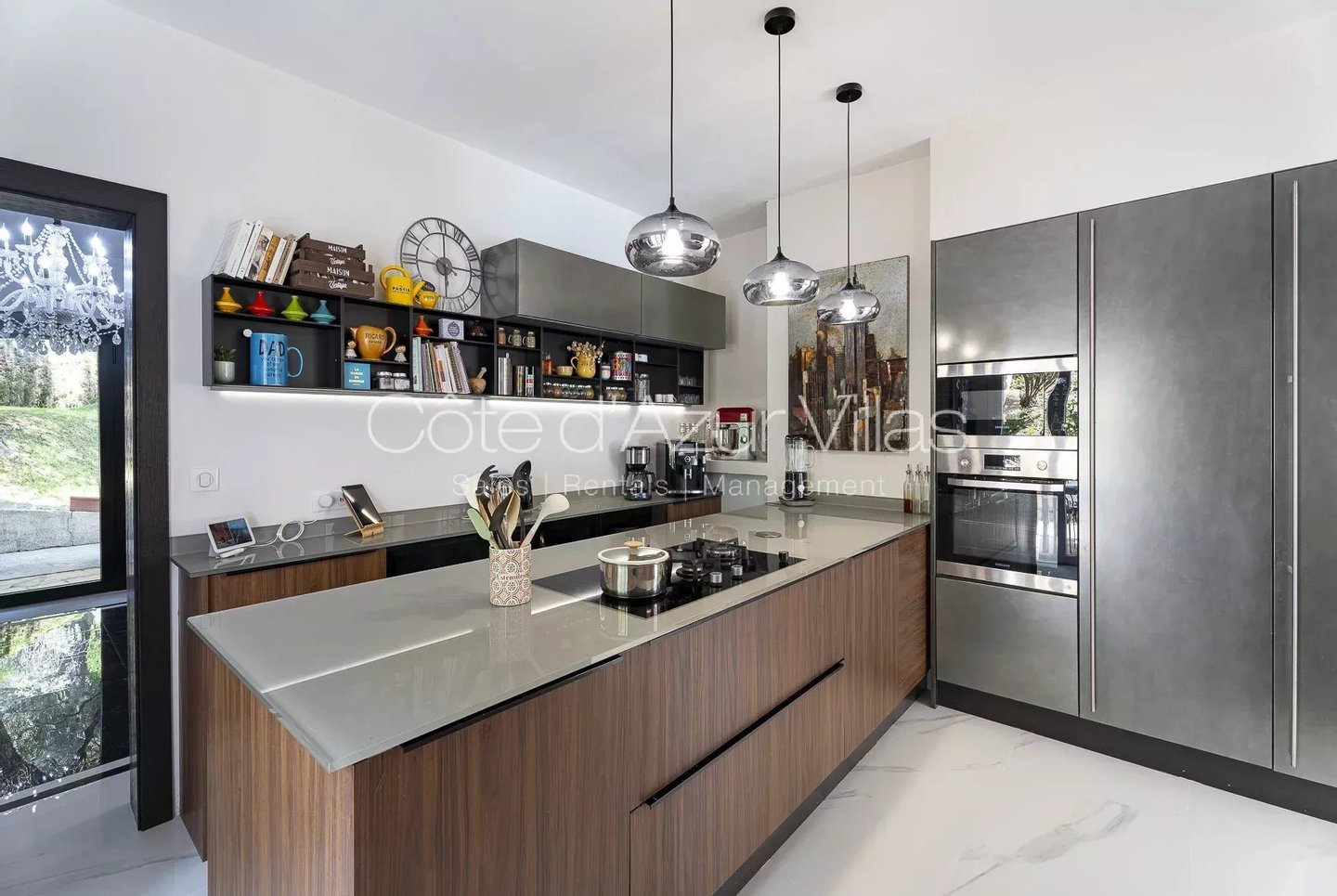 Über die umliegenden Hügel hinweg bietet diese elegante Charme-Villa von 223 m², ergänzt durch 140 m² zusätzliche Räume, einen schönen unverbauten Ausblick, keine Nachbarn im Blickfeld, mit dem Meer am Horizont. Auf einem mehr als 2.500 m² großen bepflanzten Gelände erbaut, in einer geschützten, ruhigen Umgebung, profitiert sie von einer Südausrichtung, die den ganzen Tag über optimale Helligkeit bietet, nur 5 Autominuten von Vence und 15 Autominuten von der Autobahn entfernt. Die Villa bietet hochwertige Ausstattungen, darunter Fußbodenheizung und reversible Klimaanlage, die ganzjährig optimalen Komfort gewährleisten.