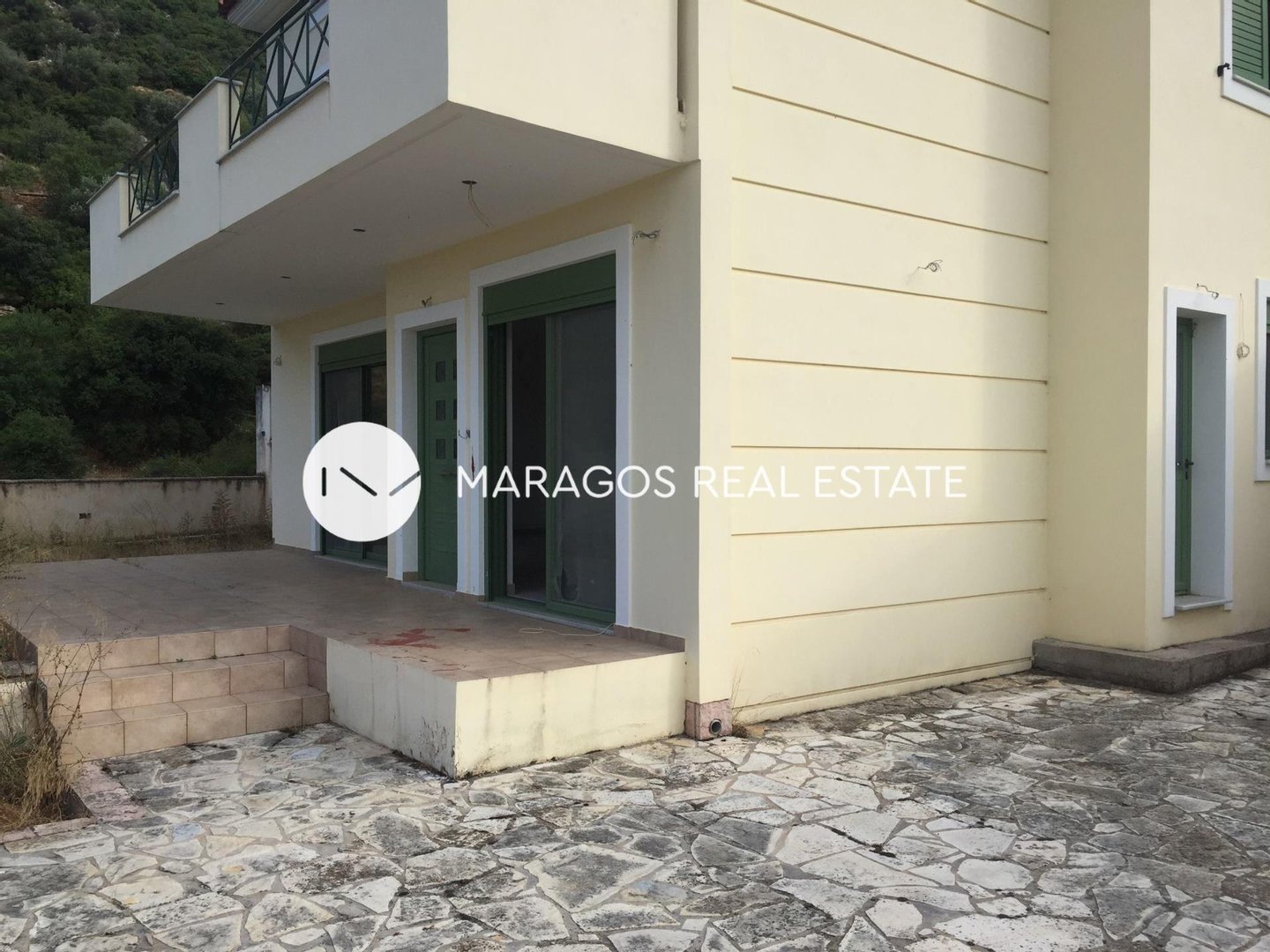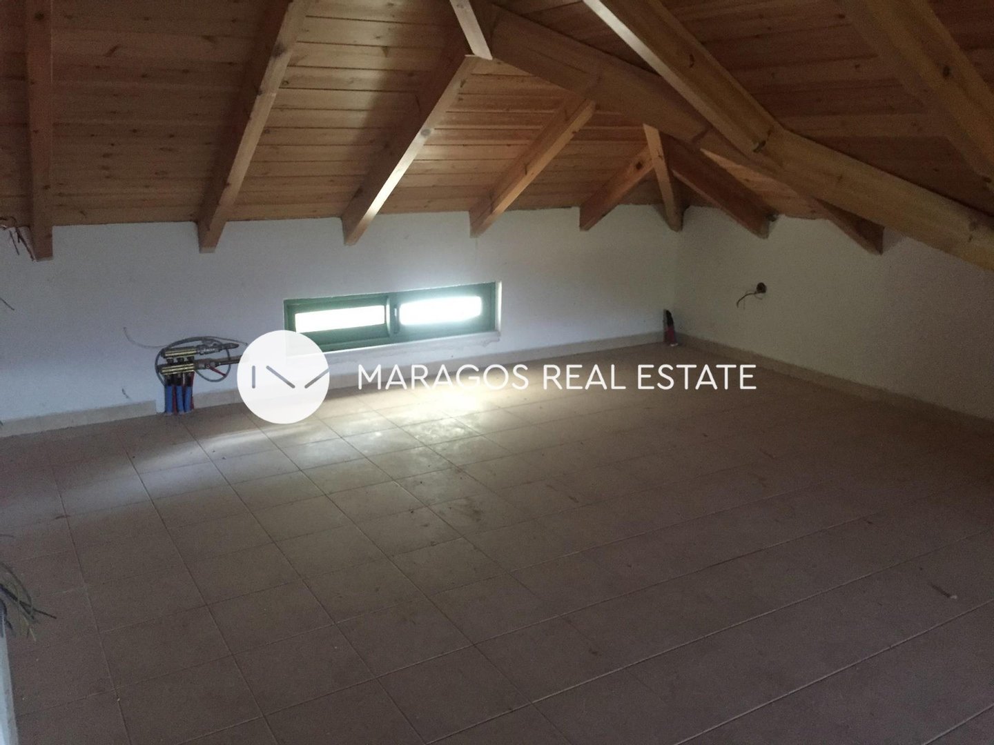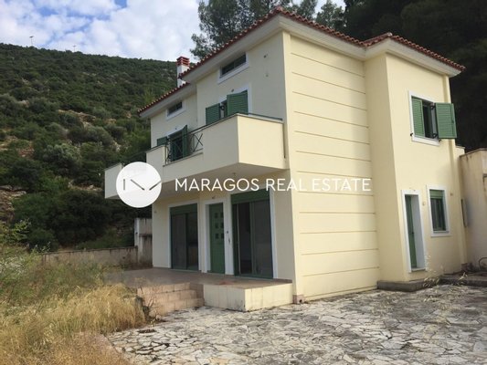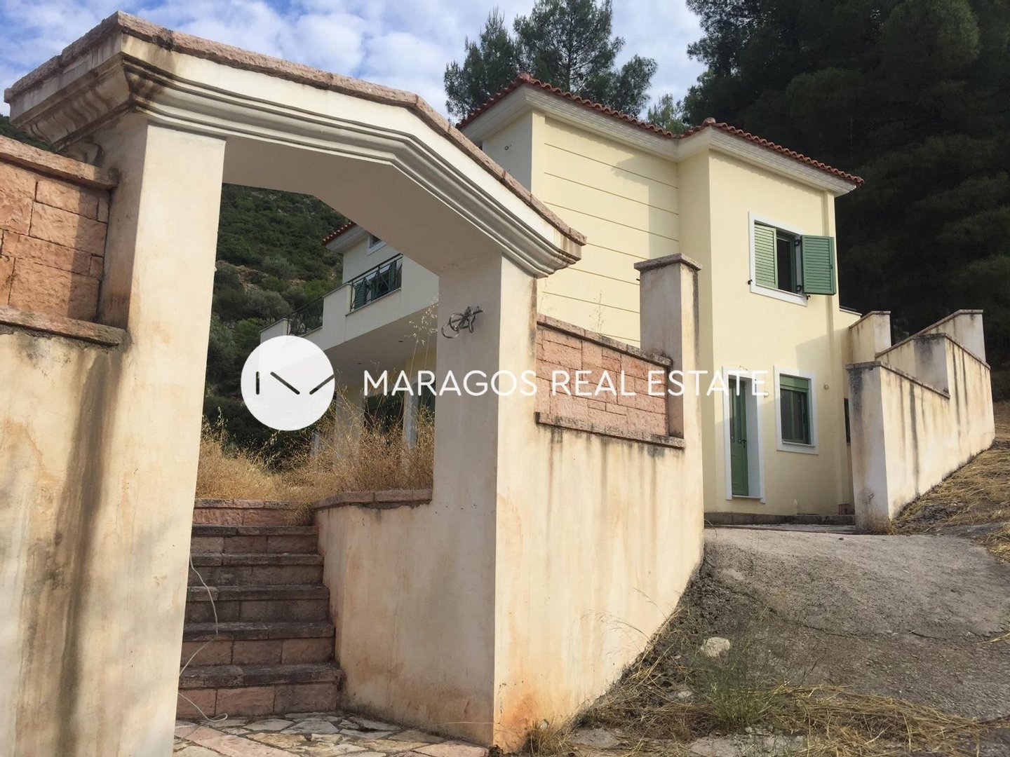 Argolis - Schinochori, in einer grünbewaldeten Gegend, steht ein Einfamilienhaus mit einer Gesamtfläche von 180 m² zum Verkauf. Es besteht aus: a) Erdgeschoss 60 m², das das Wohnzimmer, die Küche, den Abstellraum der Küche und ein Bad umfasst, während von den großen Öffnungen des Wohnzimmers Zugang zur Terrasse und dem Garten des Hauses besteht. b) erster Stock (1. Stock) 60 m², der drei (3) Schlafzimmer, ein Bad und einen geräumigen Balkon umfasst. c) Dachboden 60 m², der aus einem großen Raum und einem WC besteht. Alle Ebenen sind über eine Innentreppe miteinander verbunden und bieten einen ungehinderten Blick auf die Argolischen Ebene. Es ist unvollständig und befindet sich im Zustand, in dem es Fliesen, Aluminiumfenster mit Doppelverglasung und Insektenschutzgitter hat, autonome Ölheizung für jede Ebene des Hauses separat und einen Kamin. Es steht auf einem Grundstück von 480 m², das als Hof mit Garten und Parkplätzen gestaltet ist. Vollständig fertiggestellt, wird zum Preis von 190.000 Euro angeboten.