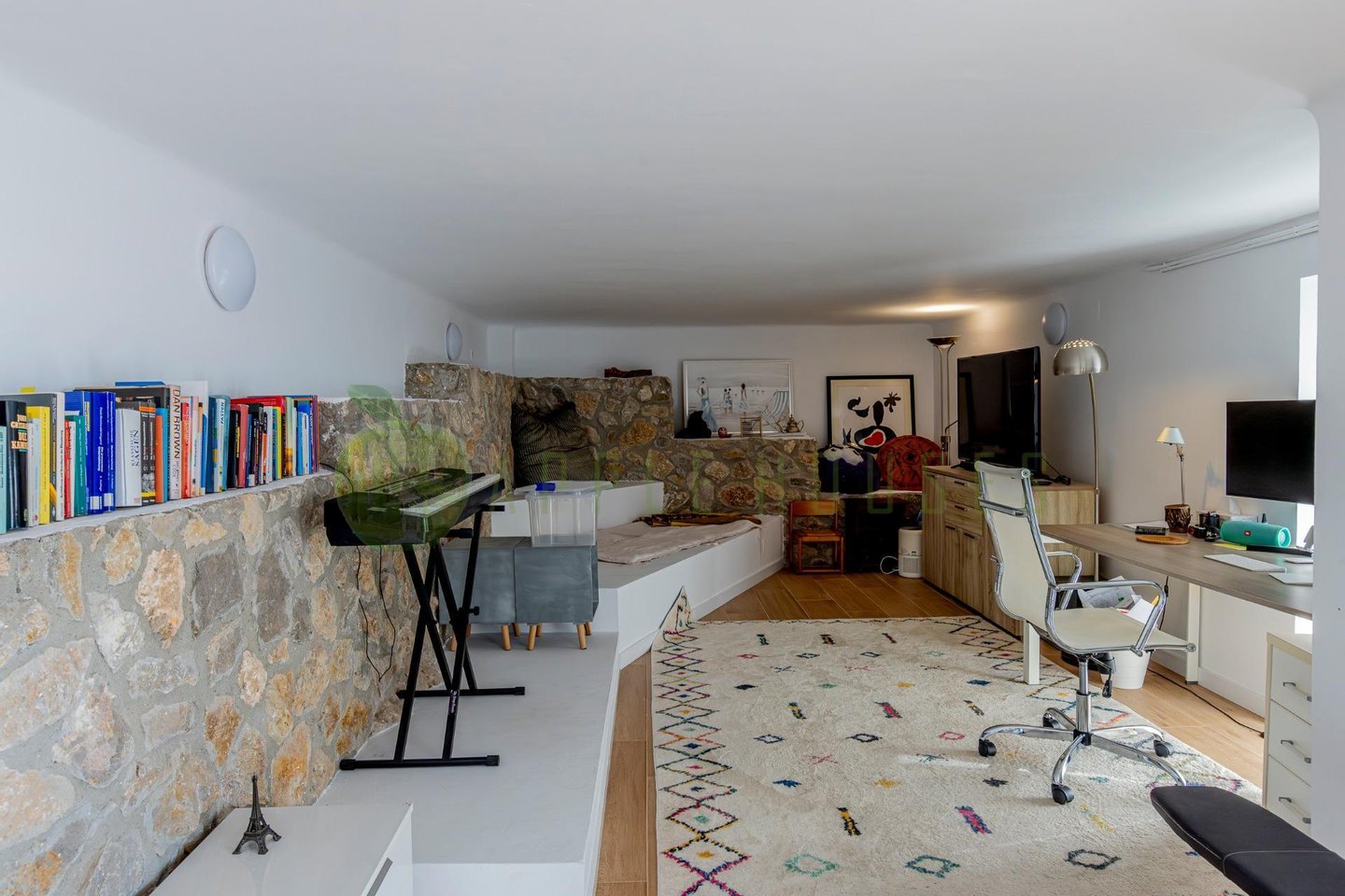 The lower floor has a versatile space perfect for guests, office or gym, with direct access to the pool and the outdoor chill-out area. The property also includes a gazebo, work table, barbecue and private garage.