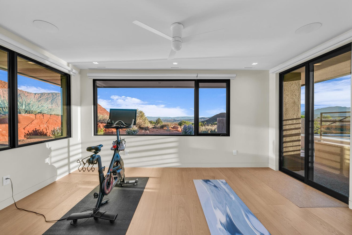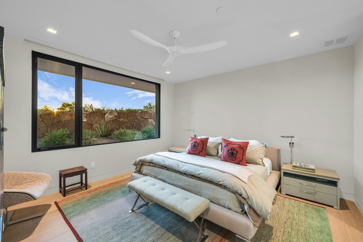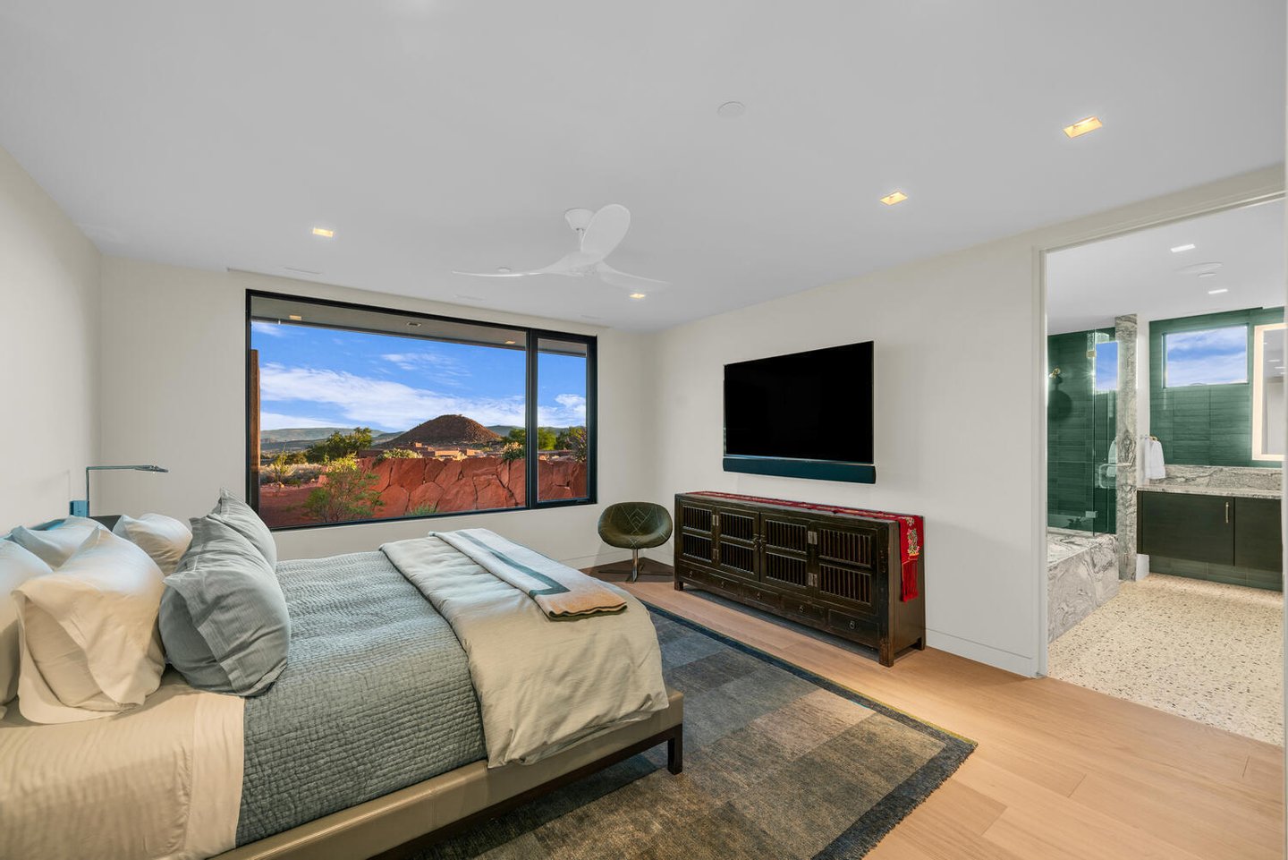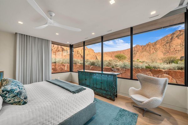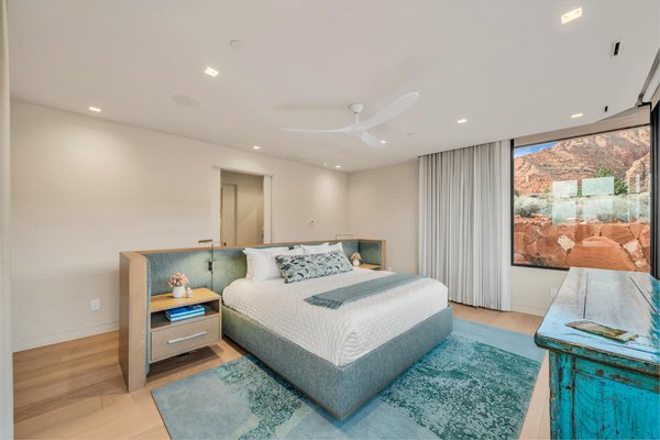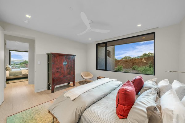Der offene Layout, der sowohl für Verbindung als auch für Rückzug konzipiert ist, fließt natürlich zwischen Versammlungsräumen und privaten Bereichen. Die Morgen beginnen mit Kaffee, während die aufgehende Sonne die roten Klippen in warmes Licht taucht, während die Abende zum Gespräch am Feuer einladen, während sich der Wüstenhimmel über ihnen vertieft. Die vom Spa inspirierte Hauptsuite umfasst ein eigenes Yoga- und Fitnessstudio, das eine ruhige Umgebung für Wohlbefinden und Wiederherstellung schafft, während zwei Gästezimmer mit eigenem Bad und eine separate Lounge komfortable Unterkünfte für Freunde und Familie bieten.