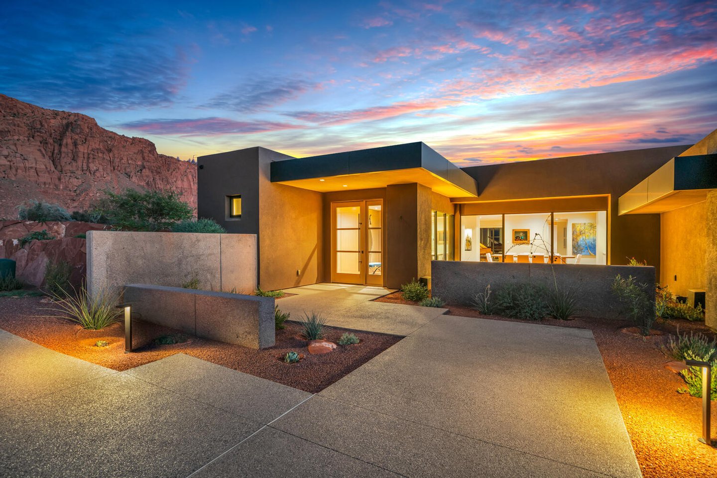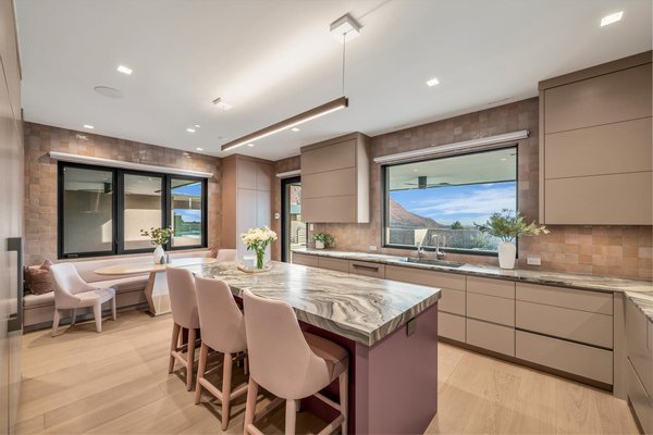 Wie in Architectural Digest zu sehen ist, steht dieses designorientierte Wüstenhaus vor den atemberaubenden roten Klippen von Kayenta, wo zeitgenössische Architektur und die umliegende Landschaft in stiller Harmonie existieren. Innenarchitektur der KSA Design Group in Chicago bringt in jeden Raum eine verfeinerte Sensibilität und schafft ein Zuhause, das sowohl anspruchsvoll wirkt als auch tief mit der umgebenden natürlichen Schönheit verbunden ist.