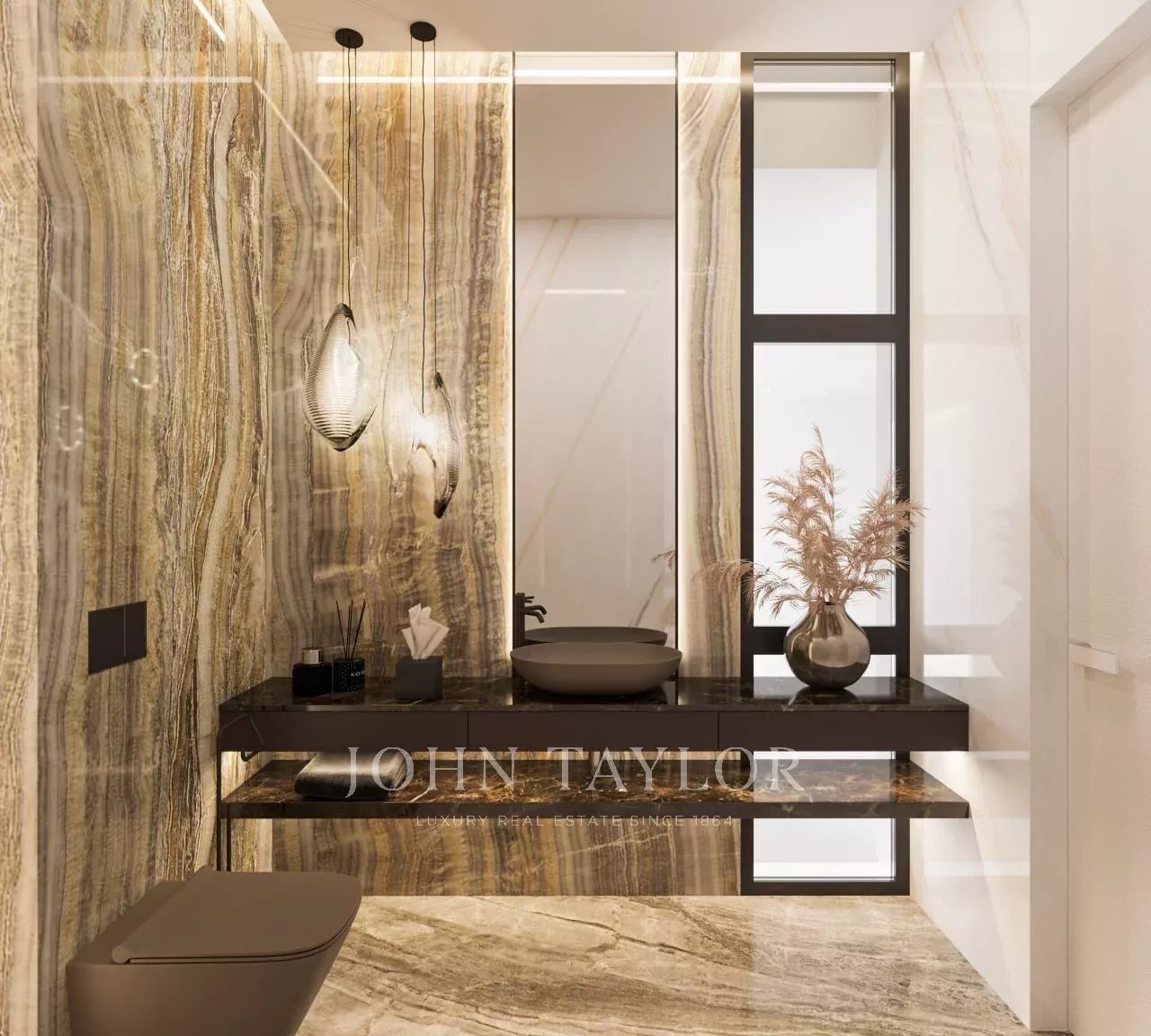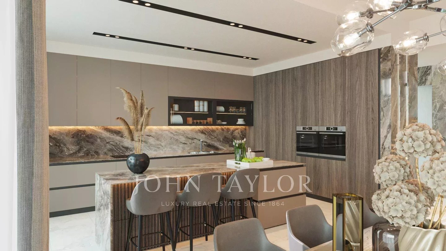 Fußbodenheizung mit Wärmepumpe, VRV-Klimaanlage, privater Überlaufpool, Photovoltaikanlage, doppelt verglaste Fenster, elektrische Rollläden, Sicherheitstür, Video-Gegensprechanlage, Designerküchen und Einbauschränke, Marmortreppen sowie angelegte Gärten mit Bewässerungssystem.