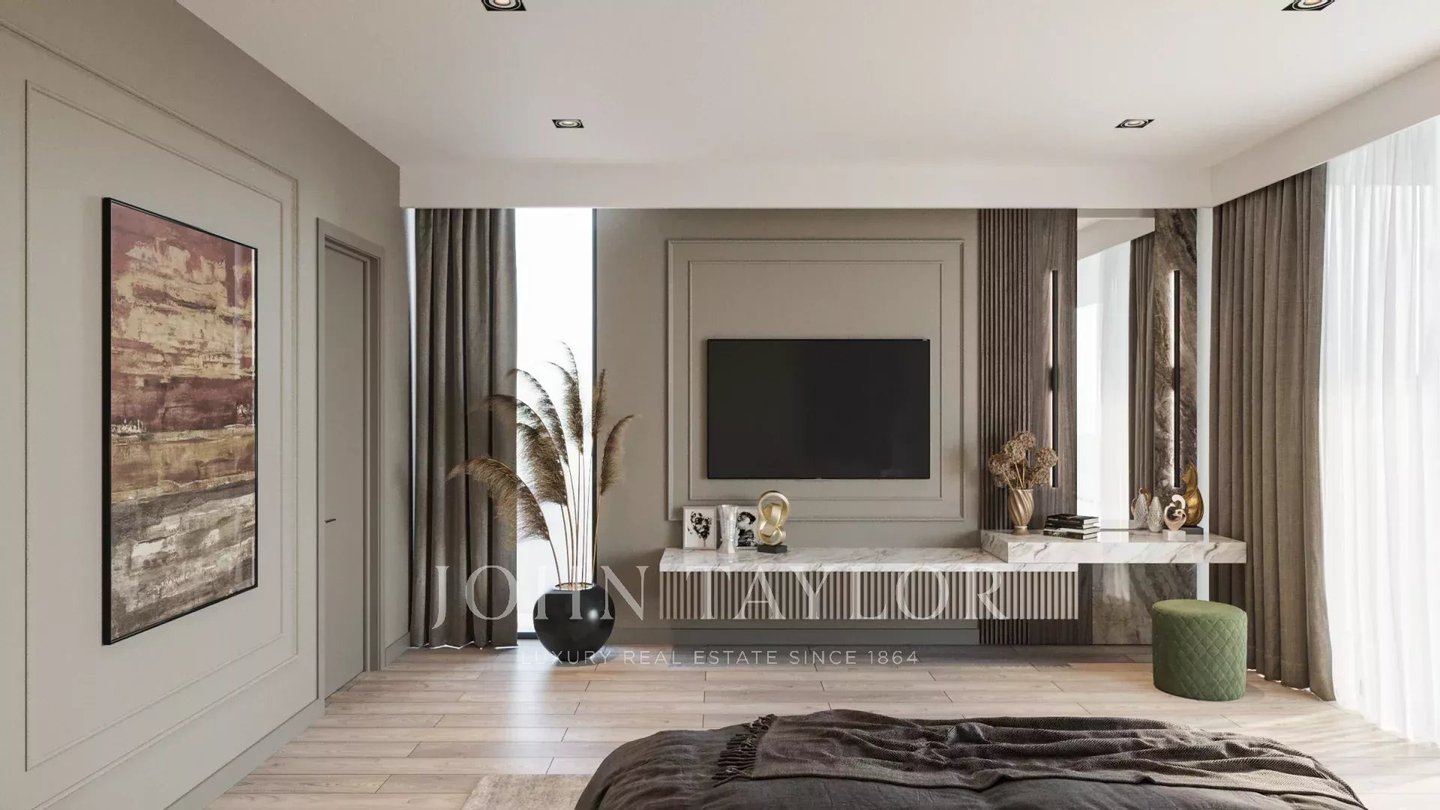 Die Villa erstreckt sich über mehrere Ebenen, darunter ein geräumiges Untergeschoss, das sich als Fitnessraum oder Spielzimmer eignet, großzügige Wohnbereiche im Innen- und Außenbereich sowie einen privaten Pool – und schafft so eine wahrhaft luxuriöse Residenz, die sich sowohl zum Wohnen als auch als Kapitalanlage ideal eignet.