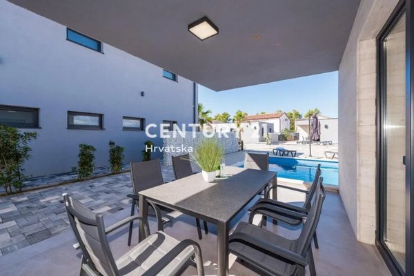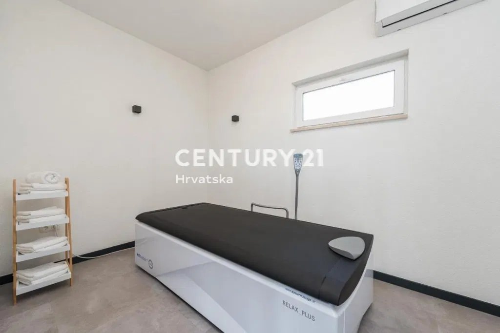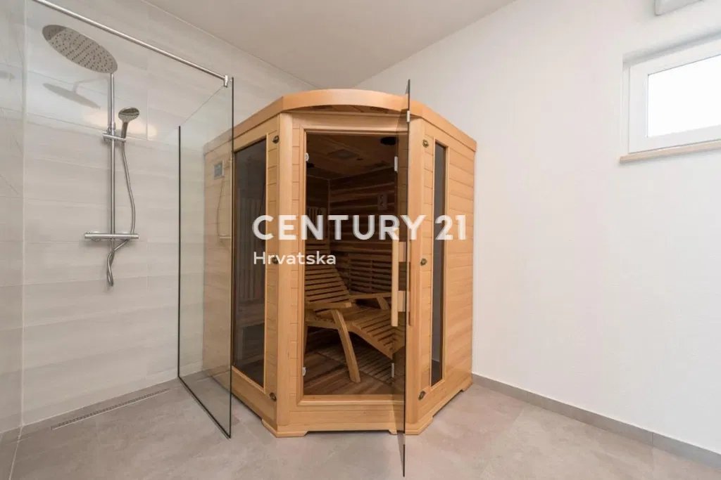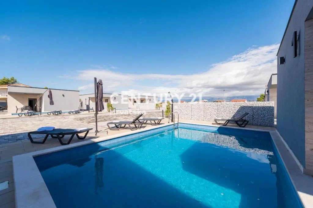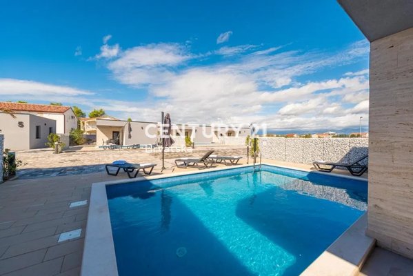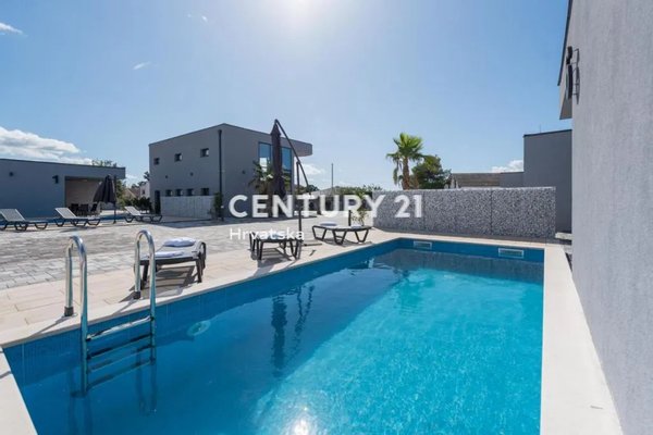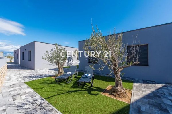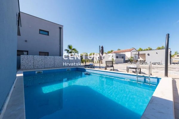 VIR, RESORT VON 8 EXKLUSIVEN VILLEN MIT SWIMMINGPOOL, Hof, Rezeption und anderen Annehmlichkeiten!! Zum Verkauf steht ein eingezäunter Ferienkomplex, der aus 8 luxuriösen Villen besteht, jede mit eigenem Pool, Innenhof, Rezeption, Fußball-, Basketball-, Badminton- und Volleyballplatz, Fitnesscenter, Wellnesscenter mit Sauna und Massagetisch, Whirlpool und Dusche, Fahrrädern usw. Das Resort befindet sich im zentralen Teil von Vir, nur 500 m vom Meer und dem gepflegten Strand von Jadro entfernt, in der Nähe aller notwendigen Einrichtungen (Restaurants, Cafés, Geschäfte, Bäckereien usw.). Jede Villa hat eine Fläche von ca. 90 m2, besteht aus 2 Schlafzimmern mit Doppelbetten, 2 Bädern mit Duschen, 1 separatem WC, Wohnzimmer mit Esszimmer und voll ausgestatteter Küche. Im Wohnzimmer befindet sich ein Schlafsofa. Vom Wohnzimmer aus gelangt man auf eine geräumige, möblierte und überdachte Terrasse von ca. 18 m2 mit Blick auf den Pool. Der Hof hat eine Fläche von 200-300 m2, neben dem Pool gibt es eine Außendusche, Sonnenliegen mit Sonnenschirmen, Parkplatz. Jede Villa ist ideal für 4-6 Personen. Der gesamte Komplex ist eingezäunt, verfügt über Videoüberwachung, Rezeption. Die gesamte Anlage wird für die Vermietung an Gäste genutzt und bringt ein hervorragendes Einkommen. Kategorisierung: 4*PREIS AUF ANFRAGE!