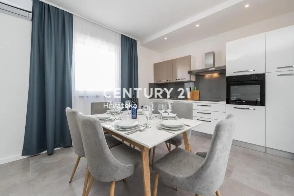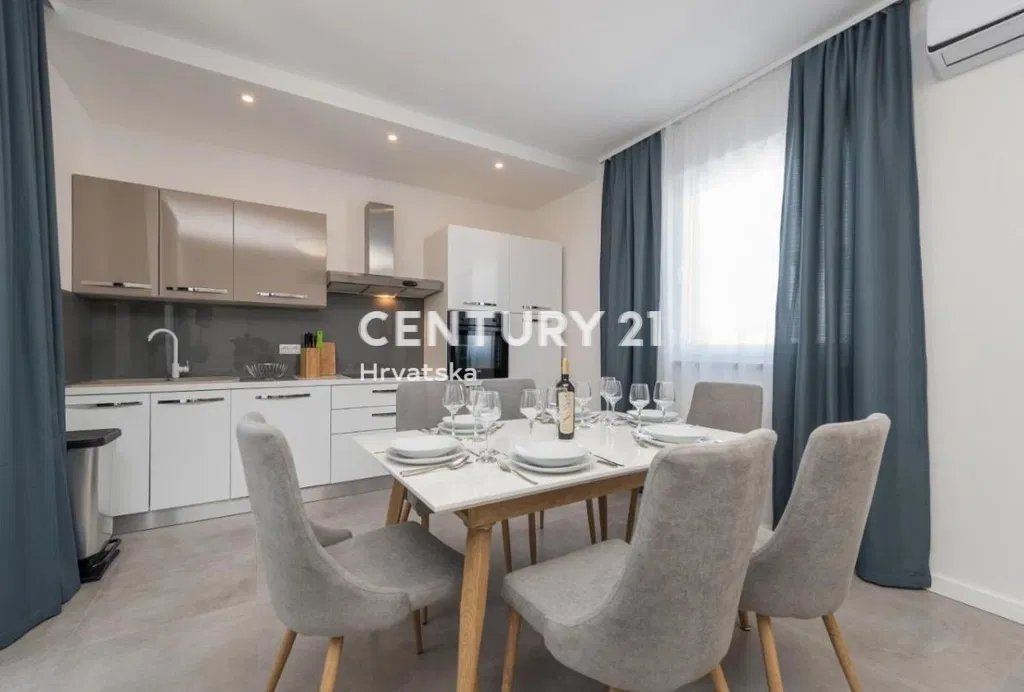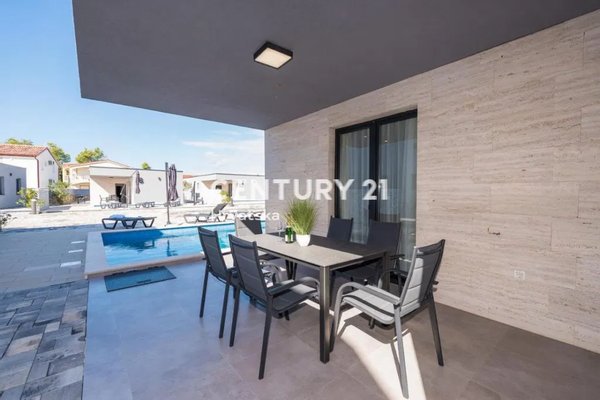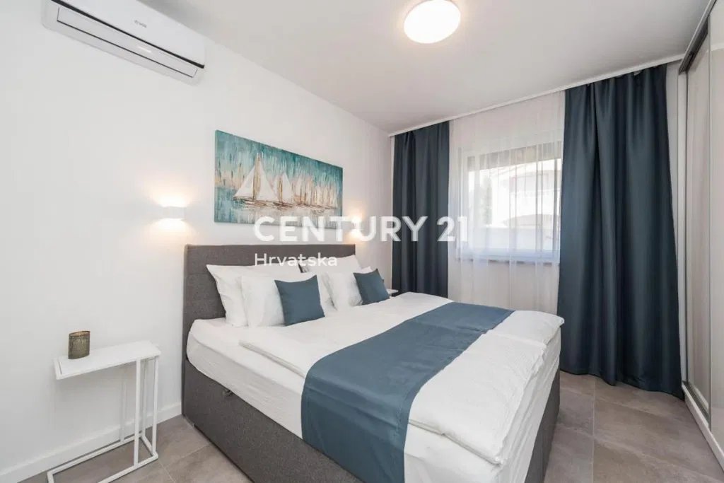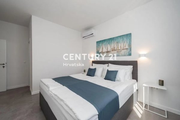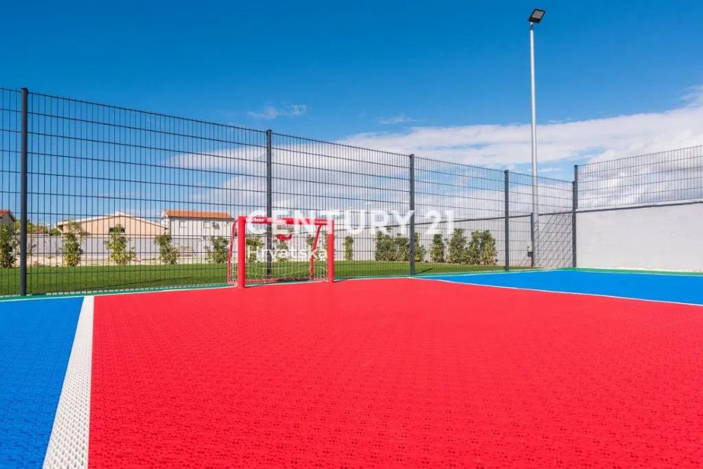 VIR, RESORT VON 8 EXKLUSIVEN VILLEN MIT SWIMMINGPOOL, Hof, Rezeption und anderen Annehmlichkeiten!! Zum Verkauf steht ein eingezäunter Ferienkomplex, der aus 8 luxuriösen Villen besteht, jede mit eigenem Pool, Innenhof, Rezeption, Fußball-, Basketball-, Badminton- und Volleyballplatz, Fitnesscenter, Wellnesscenter mit Sauna und Massagetisch, Whirlpool und Dusche, Fahrrädern usw. Das Resort befindet sich im zentralen Teil von Vir, nur 500 m vom Meer und dem gepflegten Strand von Jadro entfernt, in der Nähe aller notwendigen Einrichtungen (Restaurants, Cafés, Geschäfte, Bäckereien usw.). Jede Villa hat eine Fläche von ca. 90 m2, besteht aus 2 Schlafzimmern mit Doppelbetten, 2 Bädern mit Duschen, 1 separatem WC, Wohnzimmer mit Esszimmer und voll ausgestatteter Küche. Im Wohnzimmer befindet sich ein Schlafsofa. Vom Wohnzimmer aus gelangt man auf eine geräumige, möblierte und überdachte Terrasse von ca. 18 m2 mit Blick auf den Pool. Der Hof hat eine Fläche von 200-300 m2, neben dem Pool gibt es eine Außendusche, Sonnenliegen mit Sonnenschirmen, Parkplatz. Jede Villa ist ideal für 4-6 Personen. Der gesamte Komplex ist eingezäunt, verfügt über Videoüberwachung, Rezeption. Die gesamte Anlage wird für die Vermietung an Gäste genutzt und bringt ein hervorragendes Einkommen. Kategorisierung: 4*PREIS AUF ANFRAGE!