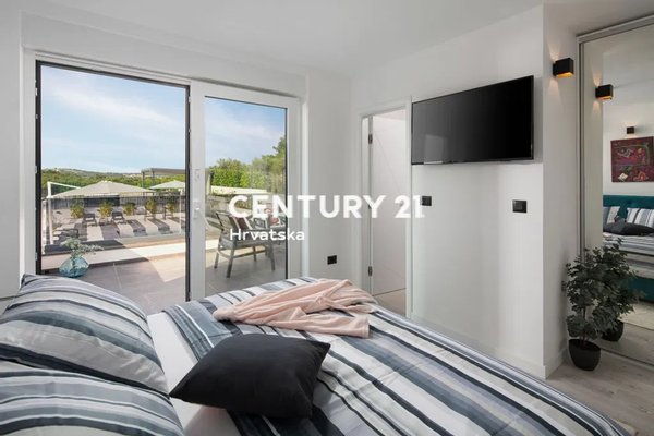 Diese wunderschöne, neue Villa befindet sich in einer guten Lage in einem kleinen Dorf, nur 4 km von Vrsar entfernt,