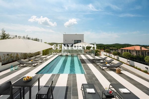 VRSAR, MODERNE VILLA MIT WUNDERSCHÖNEM MEERBLICK UND TENNISPLATZ