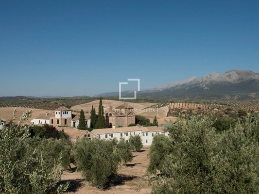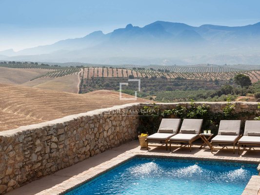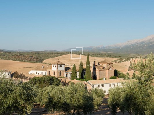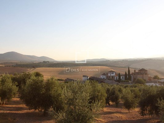 The property sits on a plot of approximately 4,000 m² and is organized around several spacious patios characterized by their light, privacy, and traditional Andalusian architectural style. From the outdoor spaces, one can enjoy magnificent open views of the surrounding rural landscape, while the pool area offers absolute tranquility amidst nature.