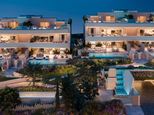 Der Komplex genießt eine privilegierte Lage in erster Strandreihe, neben einem ökologisch wertvollen Dünenreservat, das als natürlicher Schutzschild zwischen den Wohnhäusern und der Küste fungiert. Dank der Nähe zu wichtigen Verkehrswegen sind Golfplätze, Sportclubs und Einkaufszentren in wenigen Minuten erreichbar. Jede Wohnung in Wohnanlage ist so konzipiert, dass sie geräumige Bereiche bietet, die Komfort, Privatsphäre und eine prestigeträchtige Umgebung kombinieren. Es wurden Materialien von höchster Qualität verwendet, von erstklassigem Porzellan bis hin zu hochwertigen Küchen und Klimaanlagen für jedes Zimmer. Jede Einheit verfügt über private Pools, großzügige Abstellräume und Garagen mit Vorinstallation für Elektrofahrzeuge.