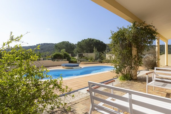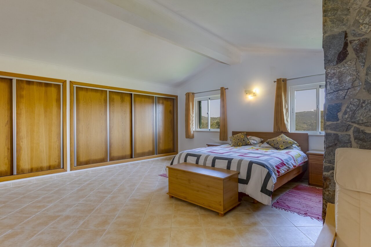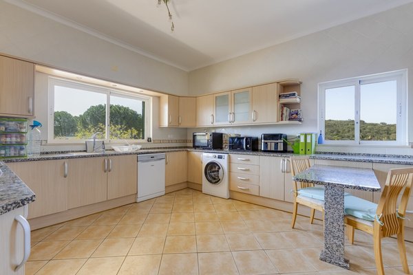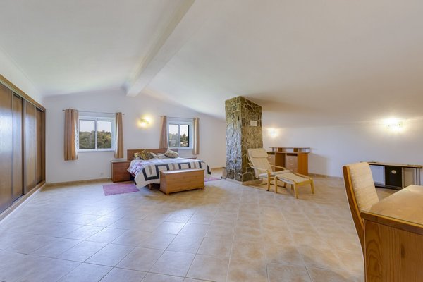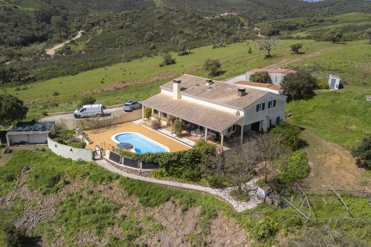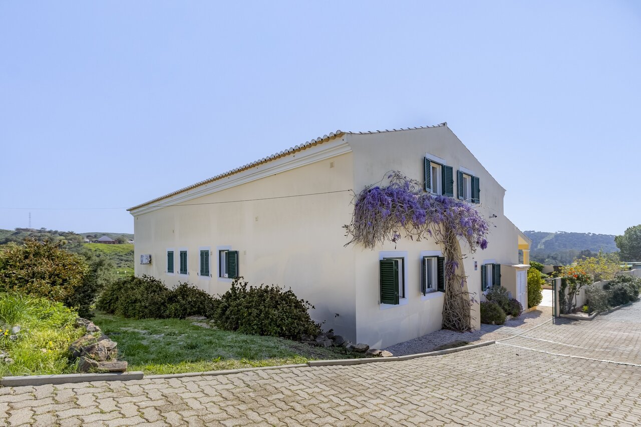 Surrounded by a wide variety of trees, including cork oaks, olive trees, almond trees, pines, eucalyptus trees and fruit trees, the property also has a vegetable garden and a chicken coop.