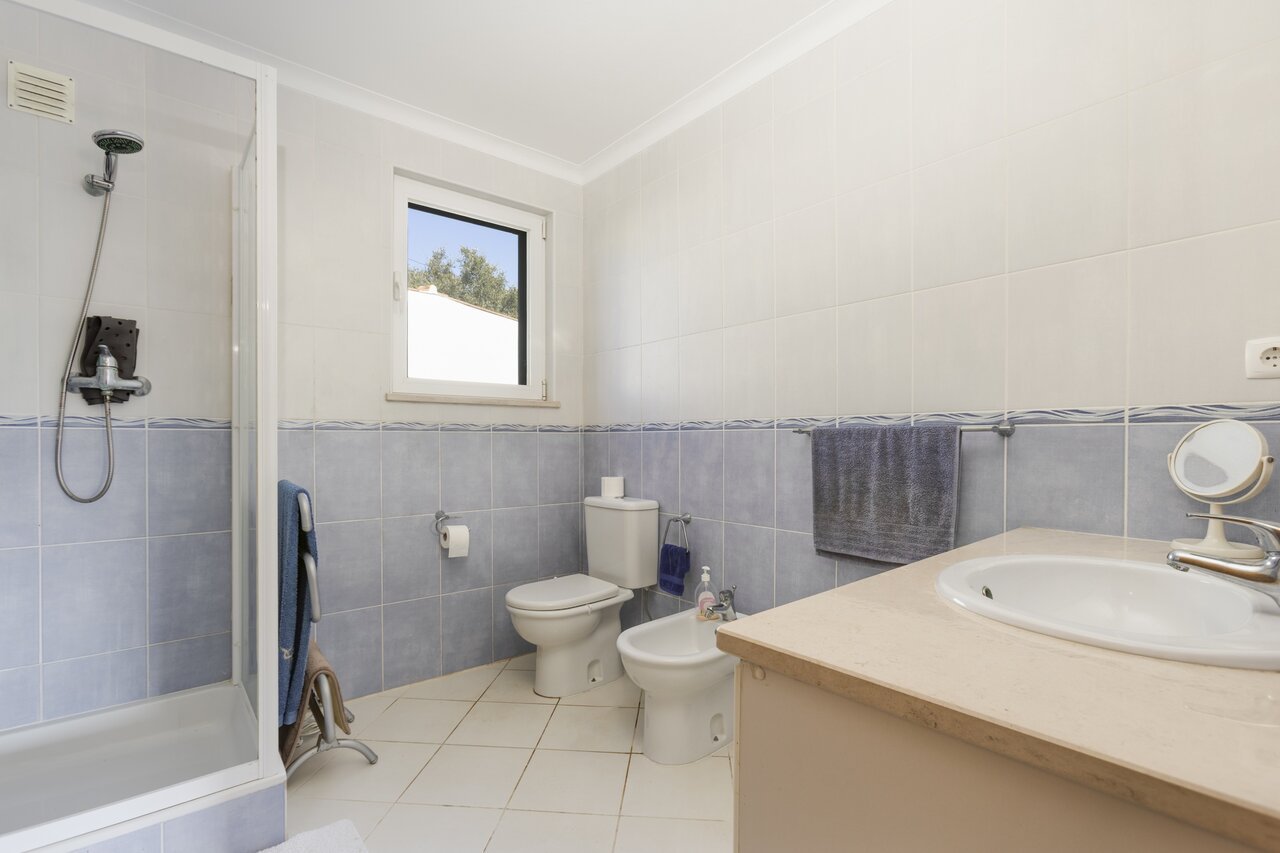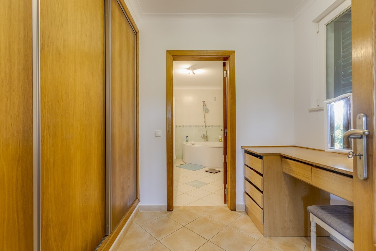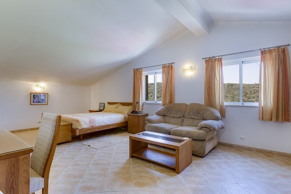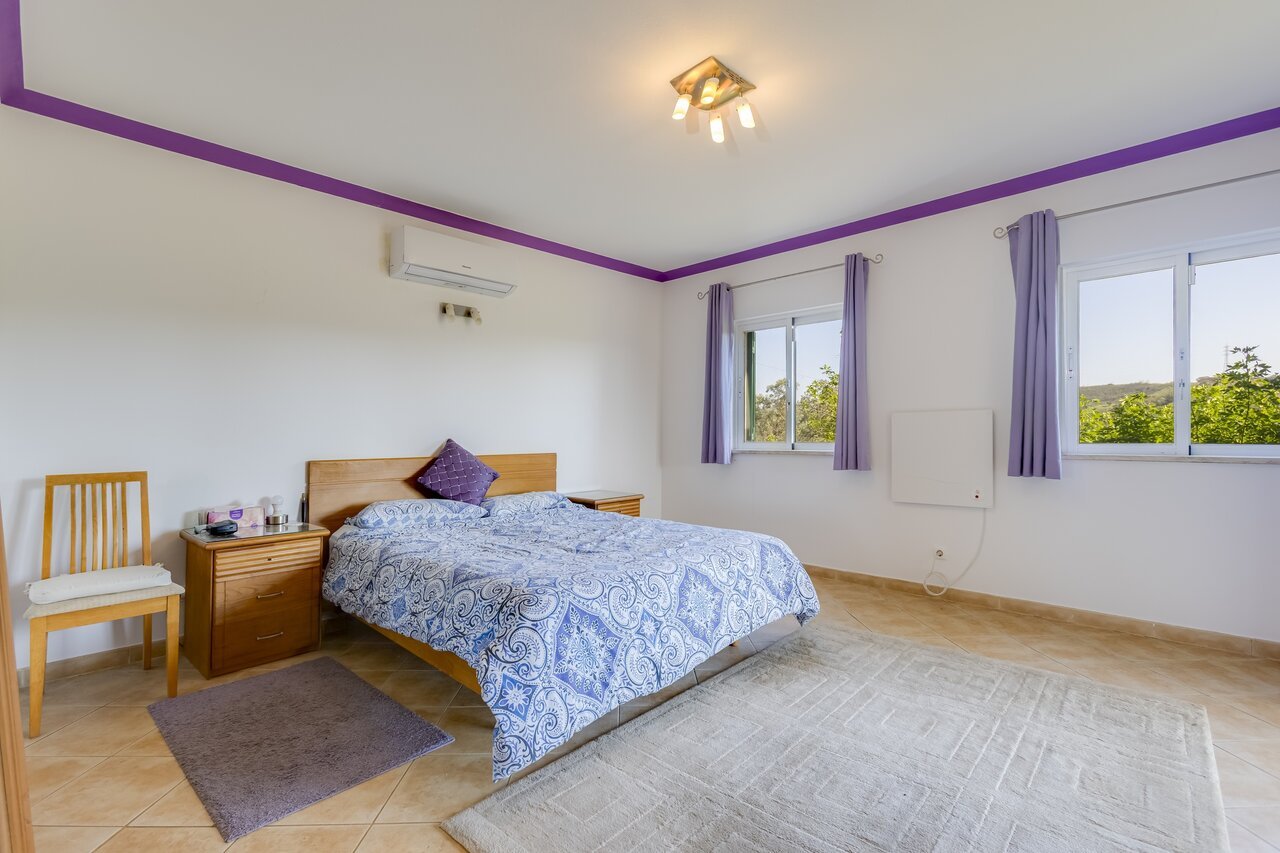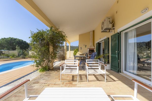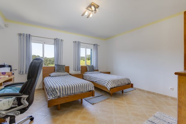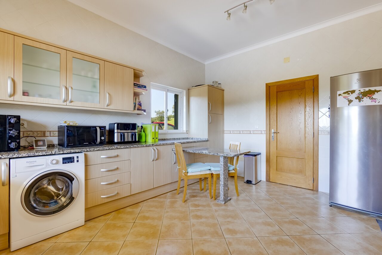 Surrounded by a wide variety of trees, including cork oaks, olive trees, almond trees, pines, eucalyptus trees and fruit trees, the property also has a vegetable garden and a chicken coop.