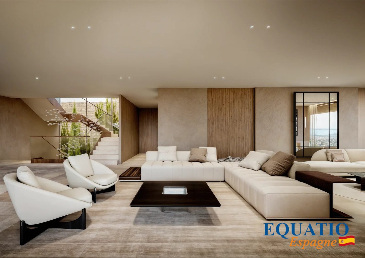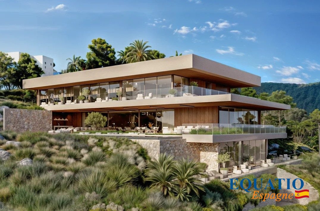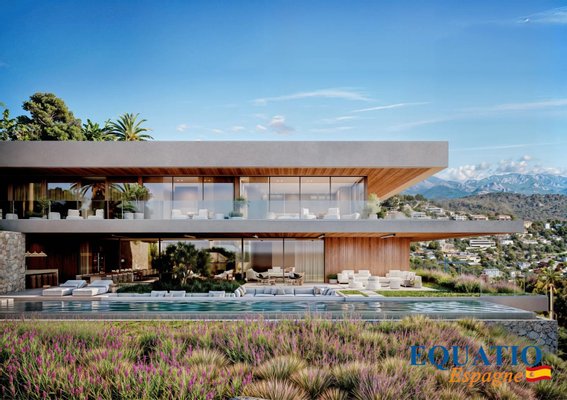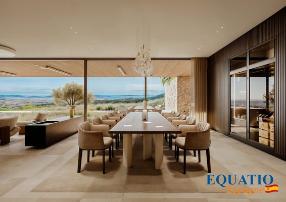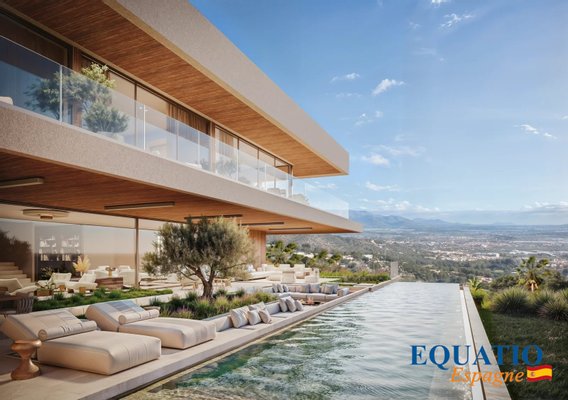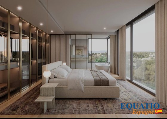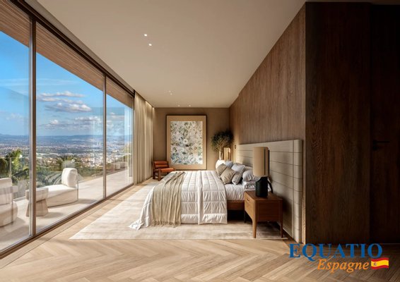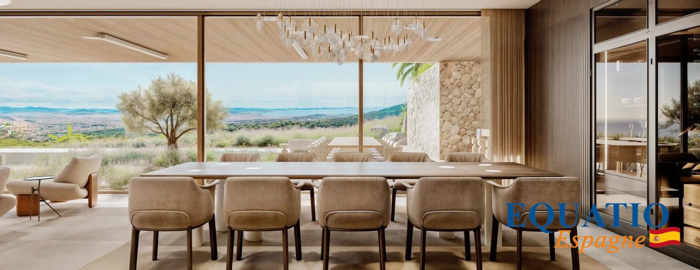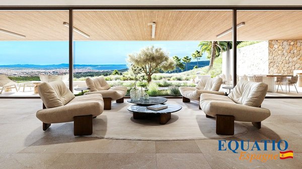 Große Fenster, die den Eindruck verwecken, immer drinnen und draußen zu sein, mit einer großen Terrasse von 600 m², die nach Süden/Südwesten ausgerichtet ist und einen unglaublichen Blick auf die Bucht von Palma bietet.