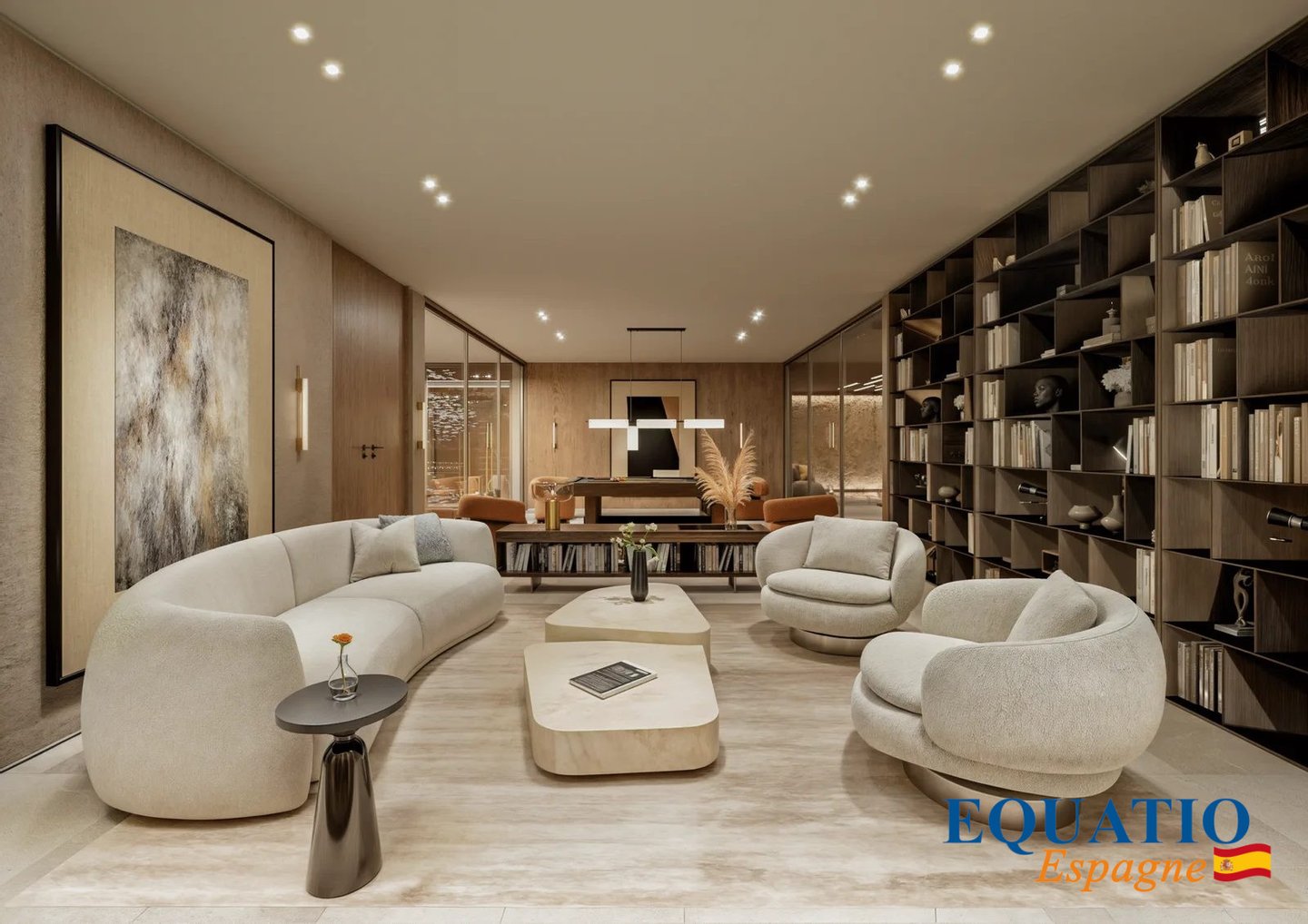 Mehrere Wohnzimmer und Entspannungsbereiche, ein riesiges Wohnzimmer mit Kamin, eine große, voll ausgestattete amerikanische Küche mit hochwertigen Haushaltsgeräten, mit seiner zentralen Insel, ...
