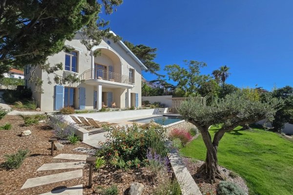 Ideal for entertaining, an adjoining annex completes this idyllic setting with a two-room apartment and a separate suite, perfect for welcoming family or guests in a warm and intimate setting. You'll particularly appreciate the two-street access, the double garage, and the 1200m² Mediterranean-style garden surrounding the house with a lush green setting that will bloom throughout the seasons, all in a perfectly peaceful setting. The swimming pool, with its elegantly furnished pool house and storage/sanitary area, invites you to relax under the azure sky, as if suspended between land and sea.